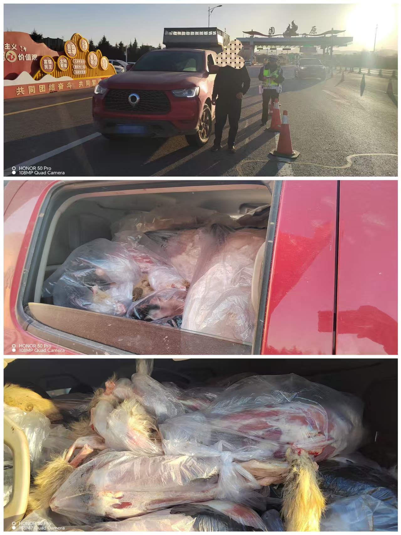 2025年12月4日10时许,固原市公安局交通管理局高速交警一大队执勤交警在固原收费站站口执勤时,查处一起客货混装违法行为。经现场民警了解,驾驶员准备去送货,为图方便就把羊肉放在座位上。