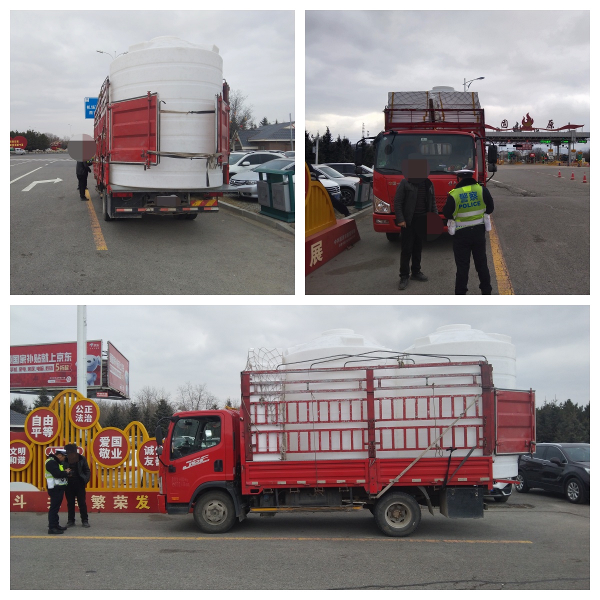 民警拦截该车后,发现车厢内装着两个特大号水桶,装载的货物明显超出货车尾部,仅用一根绳索简单固定,且绳索磨损分化,存在装载货物捆扎不牢固,超长部分影响后车安全等严重安全隐患。经询问得知,驾驶员抱着侥幸心理多拉快跑,准备上高速去泾源送货,没想到被高速交警查处。执勤民警听后对驾驶员进行了严厉的批评教育,通过实际案例给杨某讲解货车超长、超高上高速的危险性。杨某表示今后不会再这样做,最终民警对杨某的违法行为进行了罚款100元,驾驶证记1分的行政处罚。(固原市公安局交通管理局高速交警一大队)