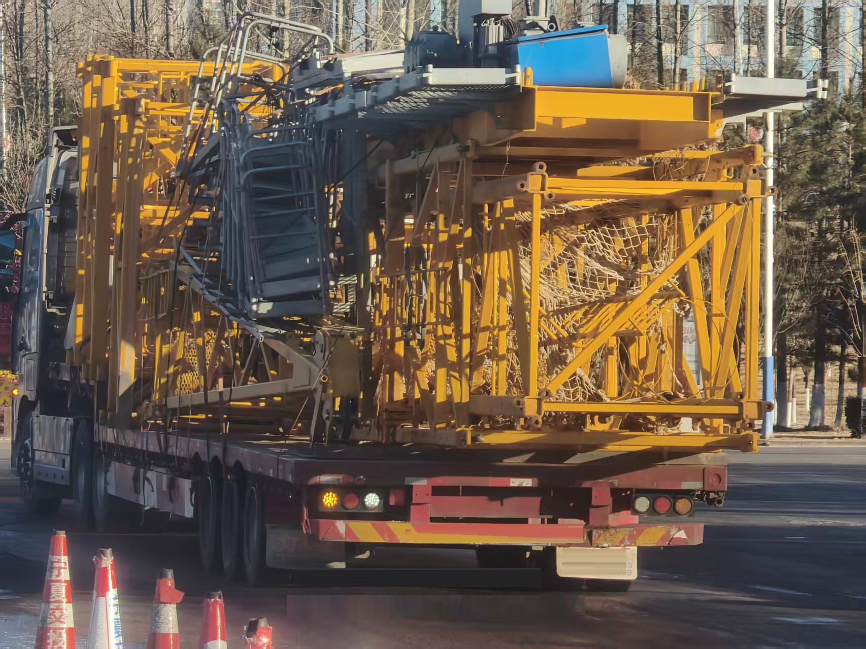 民警当即示意该车靠边停车接受检查,经现场测量确认,该车货物长度明显超出规定标准,属于机动车载物超长,存在较大交通安全隐患。经询问得知,驾驶员存在侥幸心理,将本来应该分两车运输的货物全部装载到一辆挂车上,没想到刚下高速就被交警查处。最终,民警当场对驾驶员进行批评教育,并依据相关法律规定,对该驾驶员机动车载物超长的违法行为依法进行了处罚。(固原高速交警三大队 马海兵)