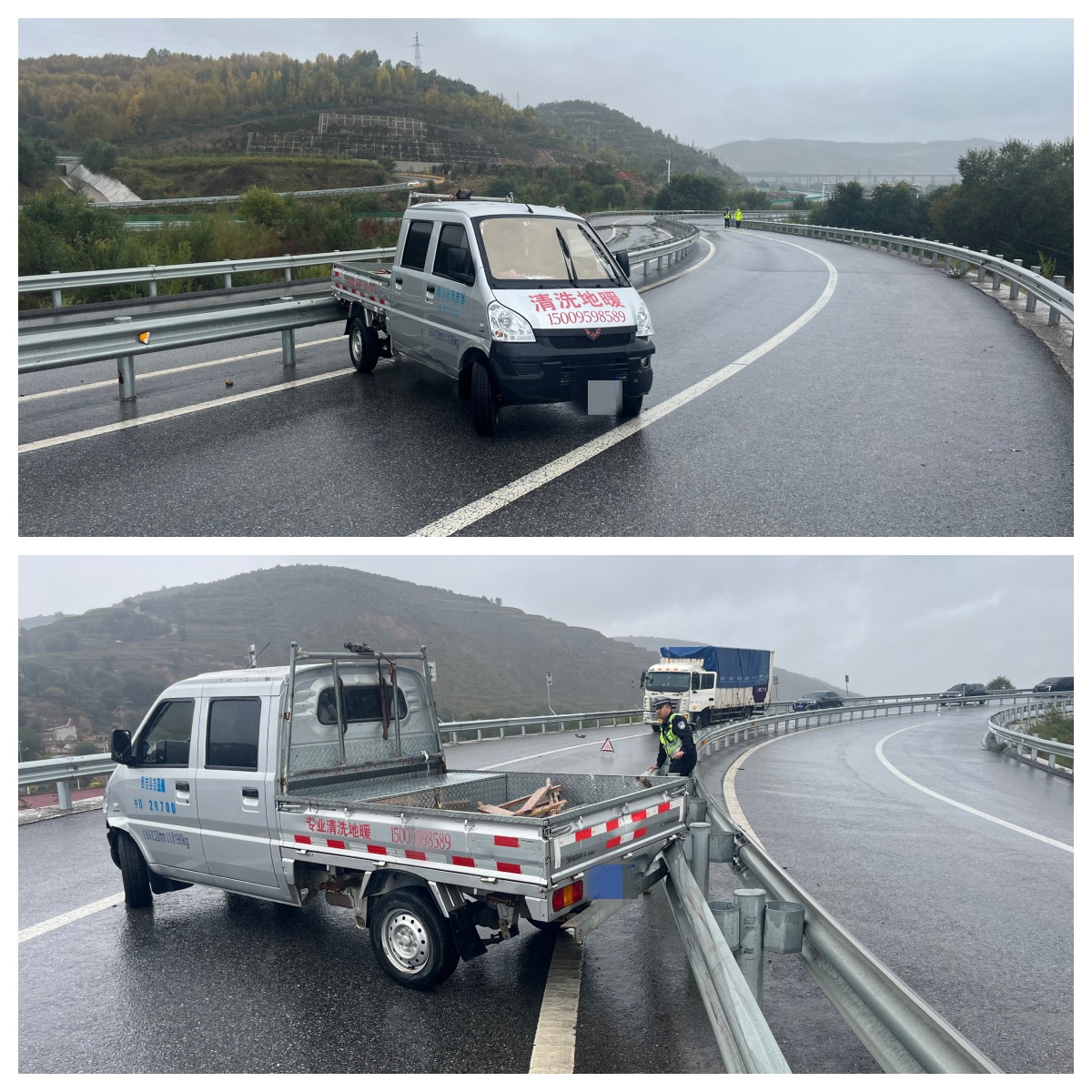 2025年10月9日下午,固原高速交警二大队指挥中心接到报警称:在固会高速西吉东匝道内,一辆轻型货车与护栏发生碰撞,造成车辆及道路交通设施受损的单方交通事故。