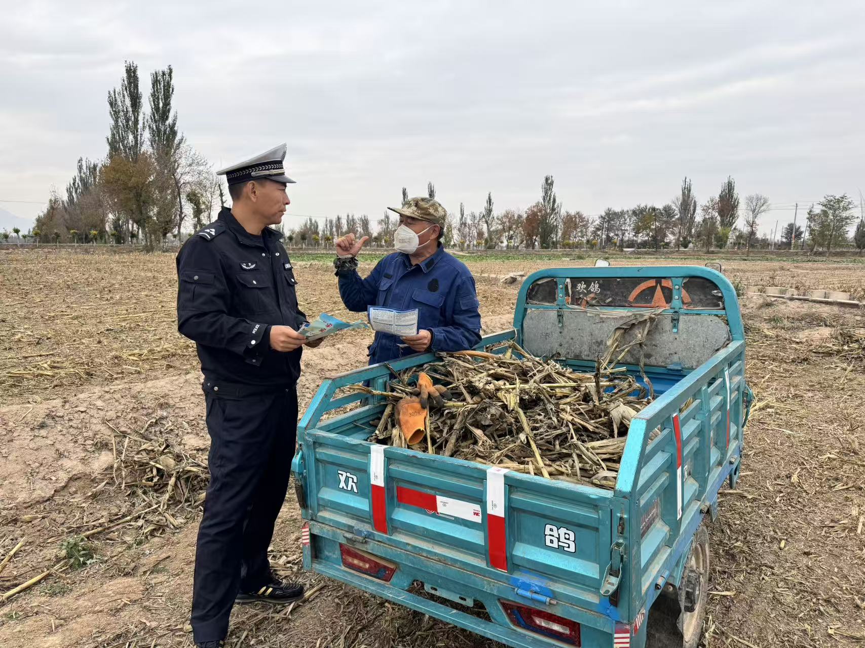 10月23日,惠农交警积极开展“美丽乡村行”交通安全宣传,走进辖区西和桥村田间地头,用“接地气”的宣传和实用的安全装备,为秋收出行安全加码。