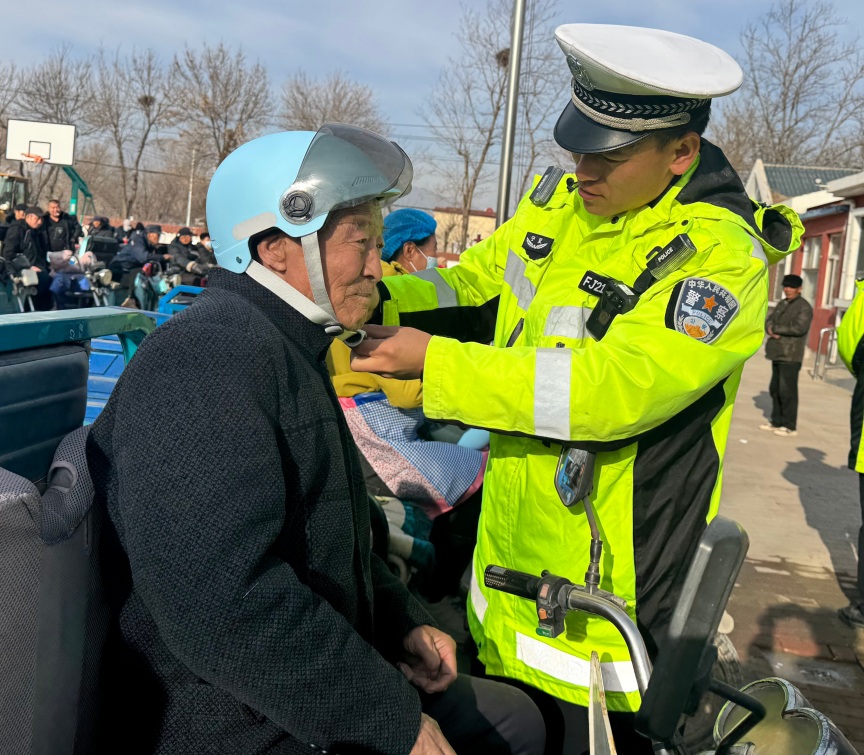 针对农村二、三轮车夜间出行视线差、易发生事故的特点,民辅警为村民的二、三轮车逐一粘贴带有反光效果的反光贴和宣传标语贴。参与活动的村民通过现场答题的方式领到安全头盔,大家表示一定要戴好头盔,安全文明出行。