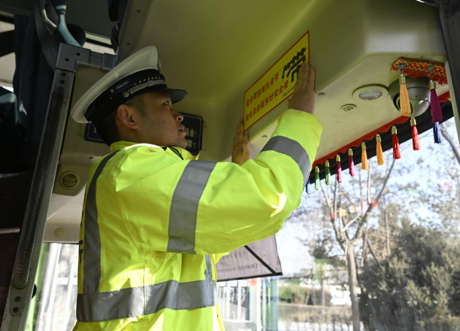 2月2日,在银川汽车站春运检查点,执勤民警对每一辆出站客运车辆进行细致检查。从驾驶人的资质,到车辆的安全带、灭火器、轮胎状况以及是否存在超员现象,不放过任何一处安全隐患,坚决杜绝车辆“带病”上路。同时,民警现场开展安全宣讲,叮嘱驾驶员安全驾驶、文明行车,并提醒乘客全程系好安全带,携手共筑平安旅程。