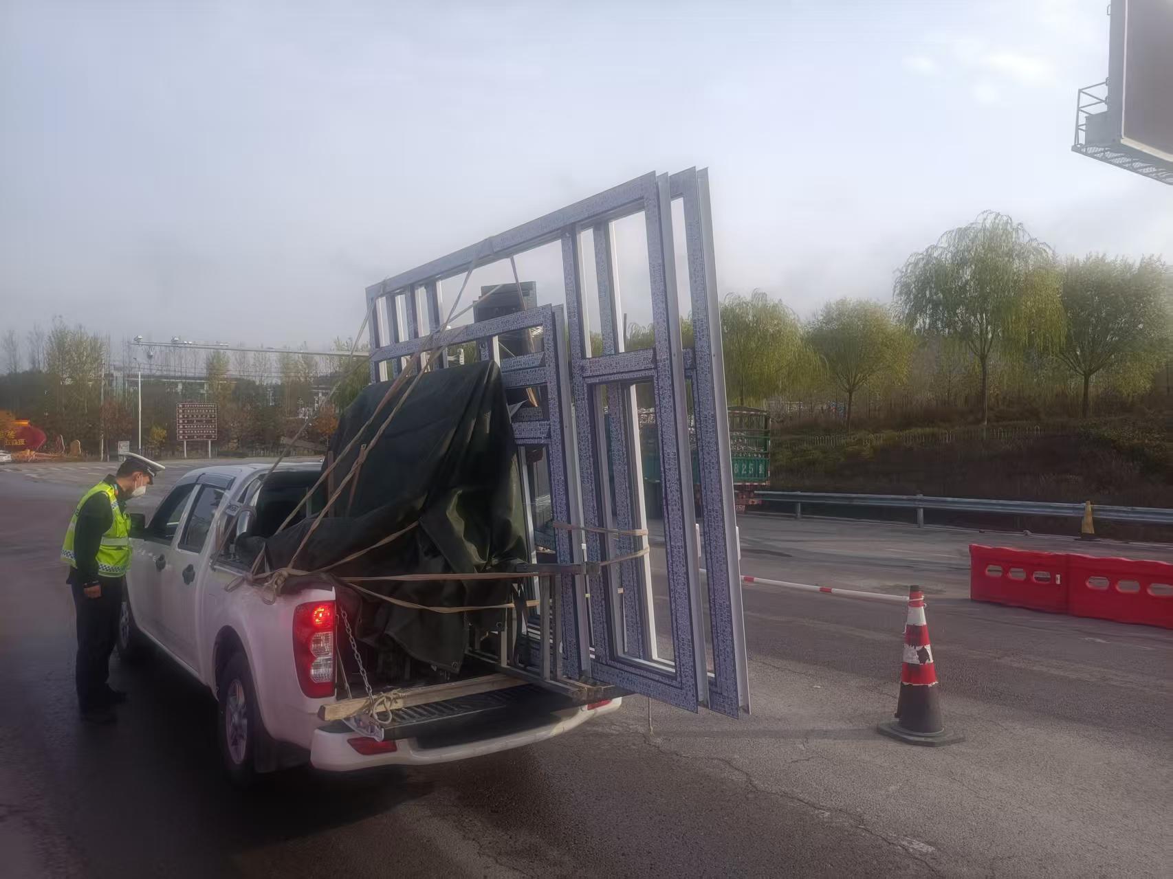 10月25日,固原高速交警三大队在辖区隆德收费站开展路检路查勤务时,查处一起货车超高、超长违法行为,及时消除了交通安全隐患,确保道路秩序通行正常。