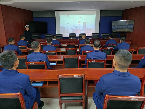 民警通过播放交通事故案例警示片,向消防救援人员详细地讲解了当前道路交通安全形势、道路交通事故发生的主要原因以及无证驾驶、酒驾醉驾、超员超速等违法行为的危害性。结合辖区交通安全现状,向消防救援人员强调,消防车辆在执行救援任务时,虽然不受行驶路线、方向、速度和信号灯的限制,但务必要打开警报、警灯,在确保安全的前提下通过路口。要求大队经常组织消防车驾驶人培训活动,让驾驶人熟练掌握在复杂多变的驾驶环境中避免交通事故发生。
