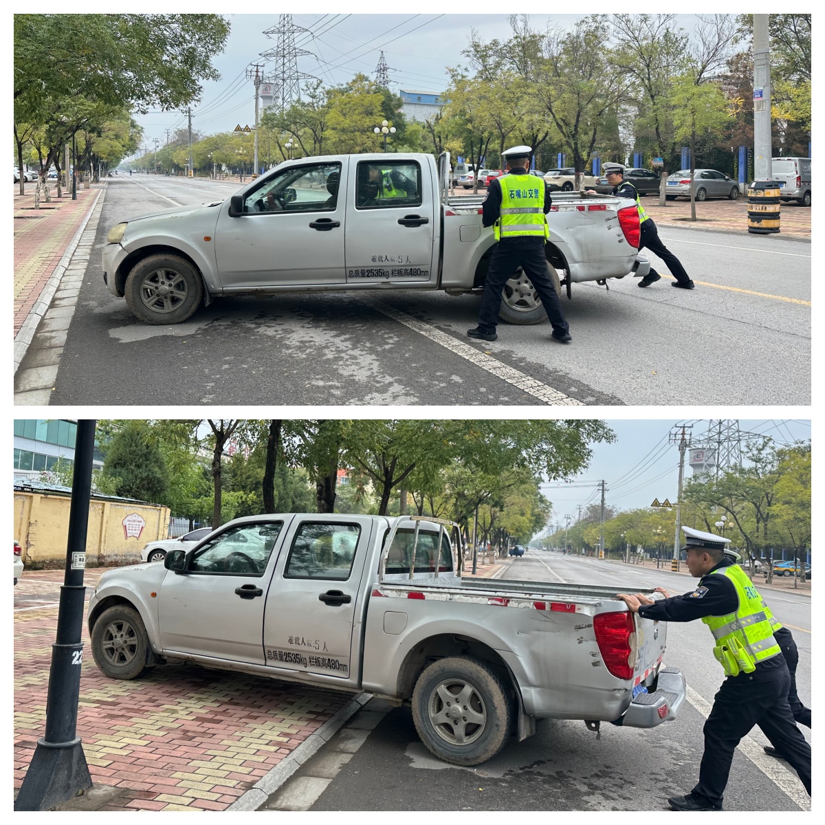 10月15日,大武口交警大队执勤民辅警在辖区巡逻时,妥善地处理了一起车辆故障事件。下午,执勤交警在辖区胜利街开展巡逻工作时,发现一辆白色皮卡车停在道路中央,对过往车辆构成安全隐患,极易引发交通拥堵。经现场询问驾驶员,得知该车因突发机械故障无法启动,驾驶员虽已联系汽修厂,但救援车辆仍需一定时间才能抵达,驾驶员正为此焦急不已。