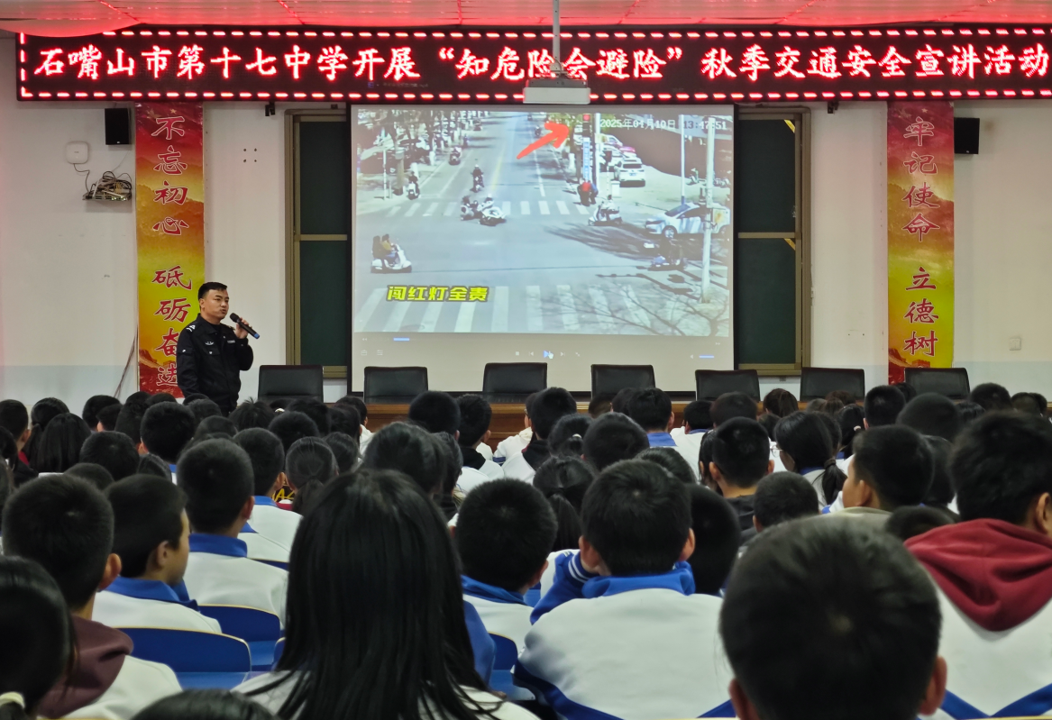 10月17日下午,大武口交警大队走进辖区石嘴山市第十七中学开展“一盔一带”主题交通安全宣传活动,为同学们送上了专属的“安全防护指南”。