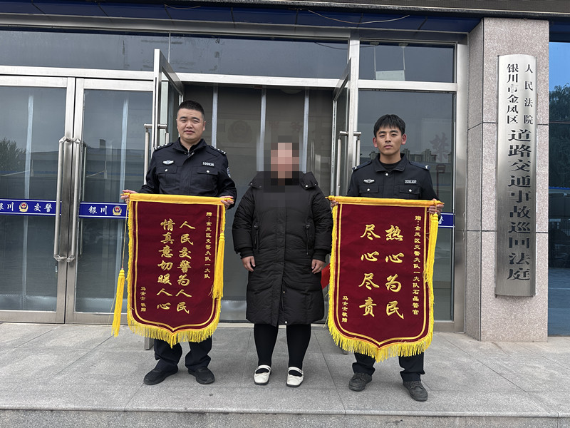 从接警到破案,没有惊天动地的场面,有的只是民警辅警细致入微的务实作风。马女士对此深受感动,事后特意制作了两面锦旗专程送到金凤一大队。(金凤区交警一大队)