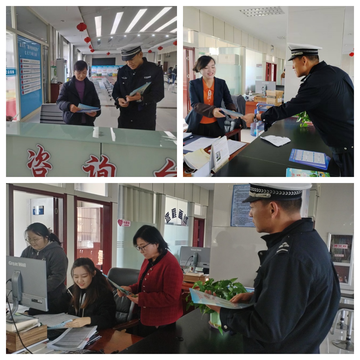 为切实做好冬季道路交通安全管理工作和“一盔一带”安全守护行动,进一步增强事业单位交通参与者的交通安全意识和文明出行意识,预防和减少冬季道路交通事故发生,10月24日上午,惠农交警大队组织民警深入惠农区人力资源和社会保障局开展交通安全及反诈宣传活动。