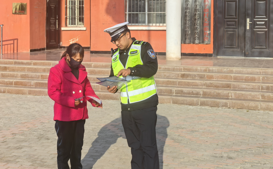 为进一步夯实农村道路交通安全基础,提升村民交通安全意识和自我防护能力,11月13日,石嘴山市公安局交通管理局红果子交警大队组织民警深入燕子墩乡燕子墩村开展交通安全宣传活动。