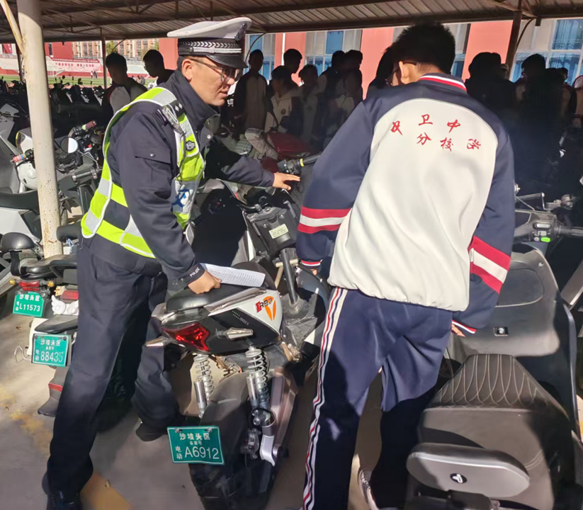 近日,中卫市公安局交通管理局沙坡头区一大队精准施策、多维发力,通过”校园宣讲+联合查处”的组合模式,全面开展中学生电动车辆专项整治工作,为辖区青少年出行安全筑牢防护屏障。