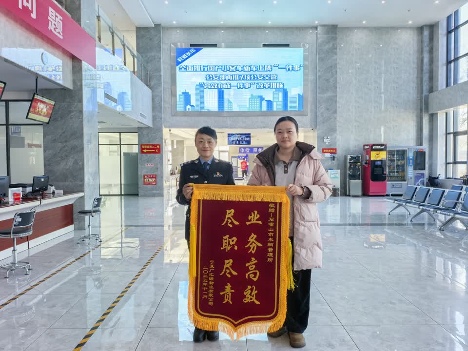 全流程的高效服务,不仅为宁夏广汇源物流有限公司节省了大量时间成本,更让企业感受到了交管服务的温度。(石嘴山市公安局车辆管理所 许娟)