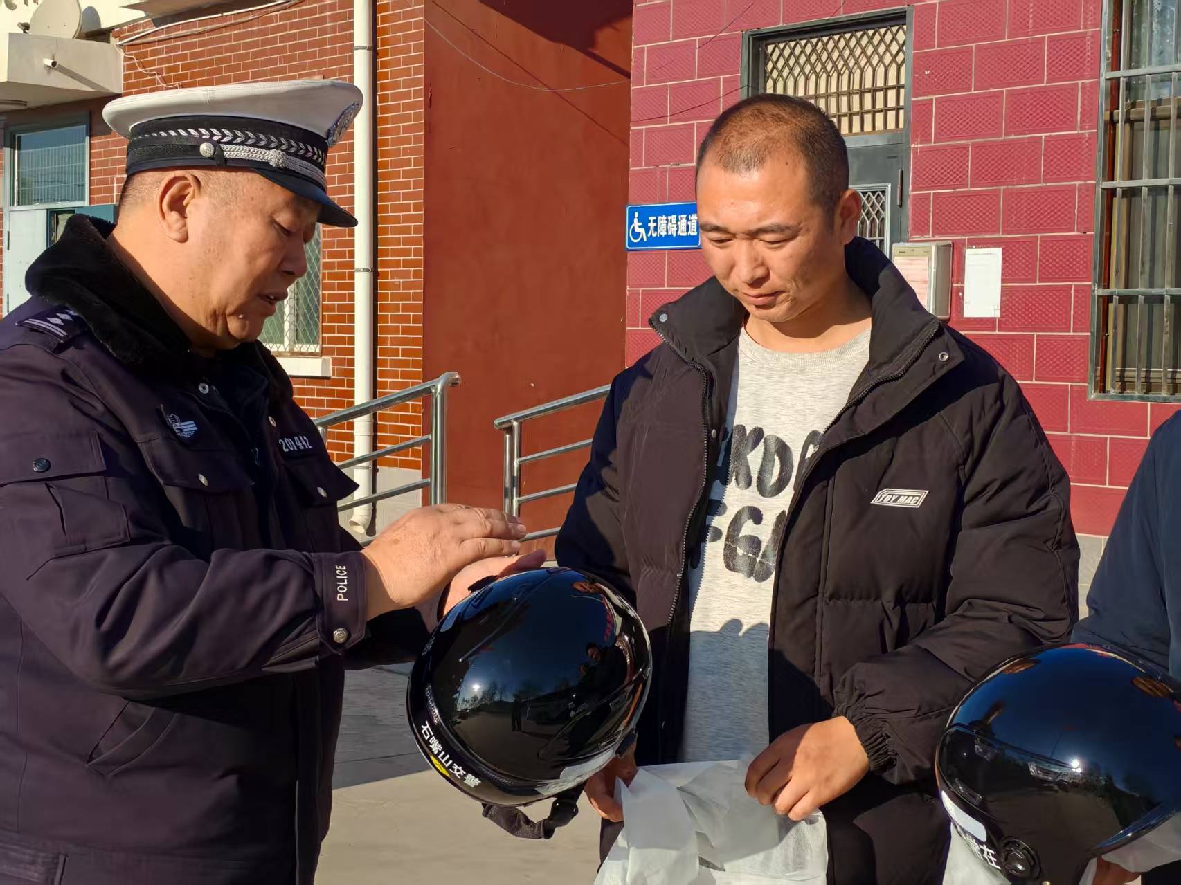 民警结合农村道路出行特点,用通俗易懂的方言向村部工作人员和过往村民讲解骑乘摩托车、电动自行车不佩戴安全头盔、驾乘汽车不系安全带等违法行为的危害,通过典型事故案例剖析,让群众直观感受“一盔一带”的重要性。同时,民警向村部工作人员赠送了石嘴山交警定制的安全头盔,向村民发放交通安全宣传单,详细解读交通法规和安全出行知识,引导群众自觉摒弃交通陋习,养成安全文明出行习惯。