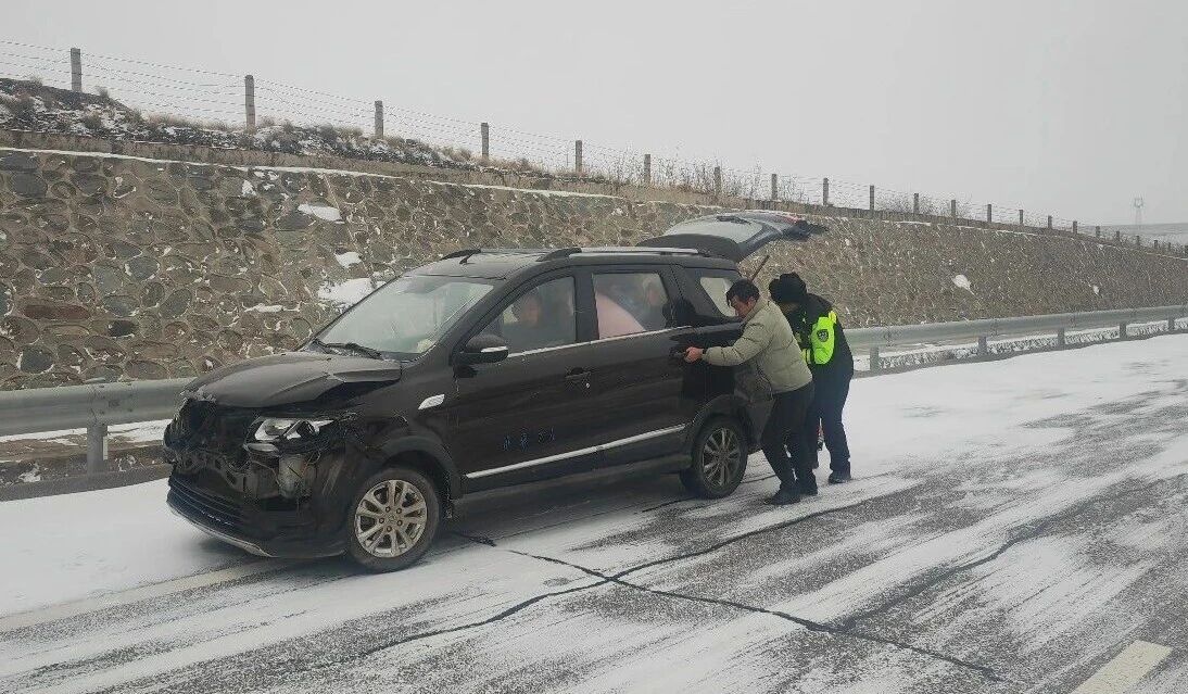 雪中送暖,护航平安。民辅警与群众合力帮助受困车辆脱困,随后迅速协调进行融雪剂撒布作业,消除安全隐患;主动为过往司机清理轮胎积雪,用细致入微的援助为冰雪道路系上“安全带”。