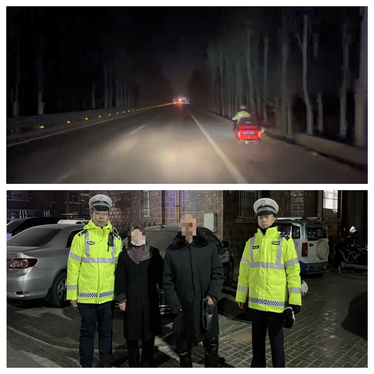 12月14日傍晚,天色已暗,城区中队民辅警马扬、杨硕等人巡逻至崇湖路与新杜路路口时,发现一位老人在车流中徘徊,险象环生。民警立即停车,将老人引导至安全区域。经耐心安抚与询问,得知老人当日独自骑乘电动三轮车出门后迷失方向,无法记清家庭住址与家人联系方式。民警经过多方查询核实,最终确定老人居住在约15公里外的吴忠市清水河畔。深夜寒意袭人,为确保安全,民警毅然决定送老人回家。他们小心装载好老人的三轮车,驱车十余公里,最终将老人平安护送到家。焦急等待的家属见到老人安然归来,握住民警的手连连致谢。(灵武市公安局交管大队 马春燕