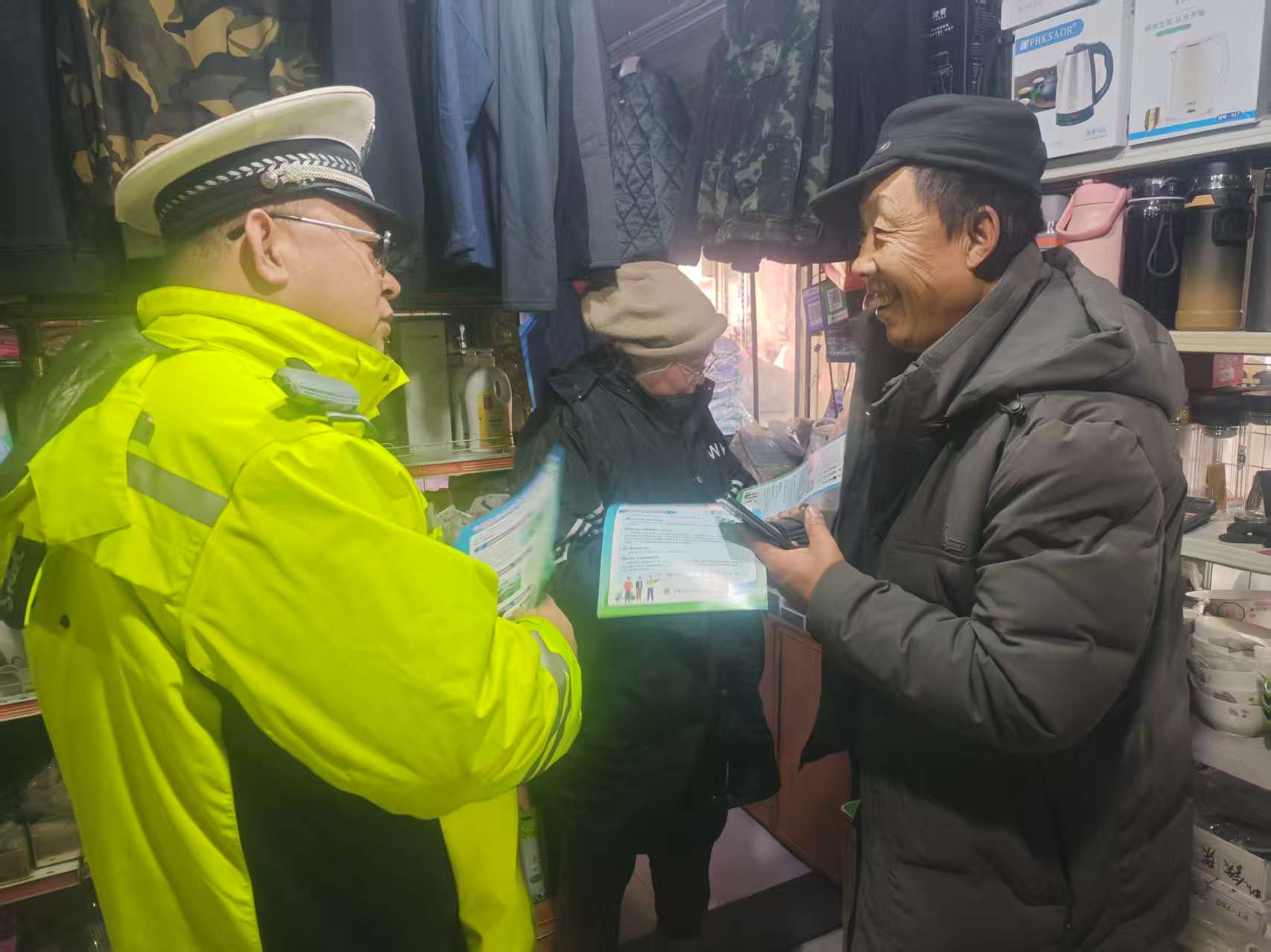 “以前真不知道头盔这么有用,回去我就赶紧买一个。”有群众听完讲解后说。还有群众询问,自己早就想买电动车了,就是不知道应该去哪里上牌照。民警当场耐心讲解上牌流程、所需材料及办理地点,获得群众好评。