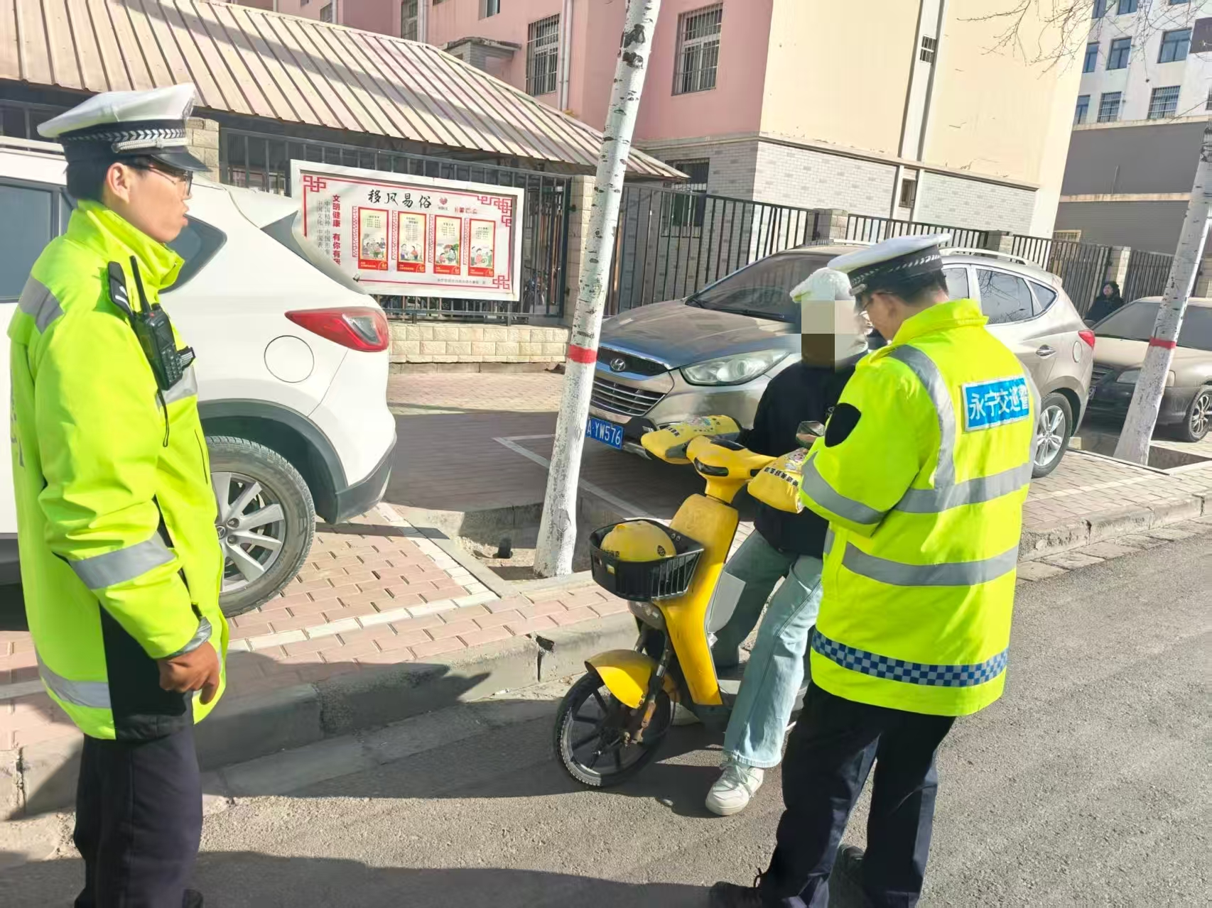 在执法现场,不少群众对交警的执法表示理解和支持。“平时觉得戴头盔麻烦,多人骑乘也是图方便,听了交警的讲解才知道,这些小疏忽都是大隐患。”一名被劝导的驾驶人当场戴上头盔,并表示今后一定规范骑行。同时,民警在执勤点设置交通安全宣传角,发放宣传手册、张贴警示海报,向过往群众普及电动车出行安全知识,提醒大家“头盔规范戴、超员不可取、守法平安行”,让安全意识深入人心。(永宁县公安局交通管理大队)