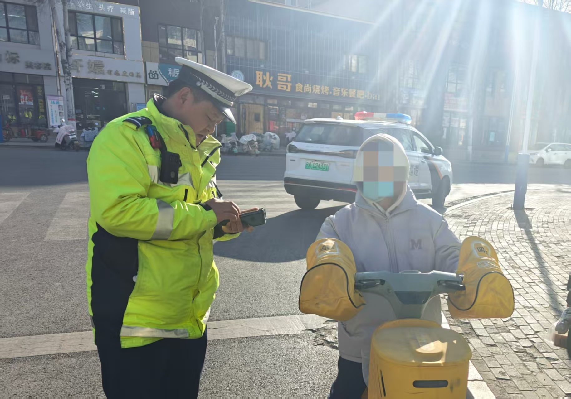 交管大队采取“定点值守+流动巡查”相结合的模式,在城区主干道、集市路口、客运站周边及春运检查服务站等重点区域设置执勤点,重点查处电动车多人骑乘、驾乘人员未按规定佩戴安全头盔、不按规定车道行驶、闯红灯、逆行等违法行为。执勤民警严格规范执法,对发现的违法车辆一律拦停核查,依法予以处罚;对轻微违法、初次违法的驾驶人,坚持“教育与处罚相结合”,现场讲解违法危害,结合典型事故案例以案说法,引导群众自觉遵守交通法规。