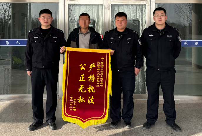 春运期间,车流人流密集,道路交通安全保障任务繁重。红寺堡交警坚守岗位、高效履职,快速公正处置交通事故,以专业严谨的工作作风赢得群众认可。2月3日,事故当事人李某平将一面印有“公正执法 高效为民”字样的锦旗送到交警部门,对民警秉公处理事故、维护合法权益表示衷心感谢。