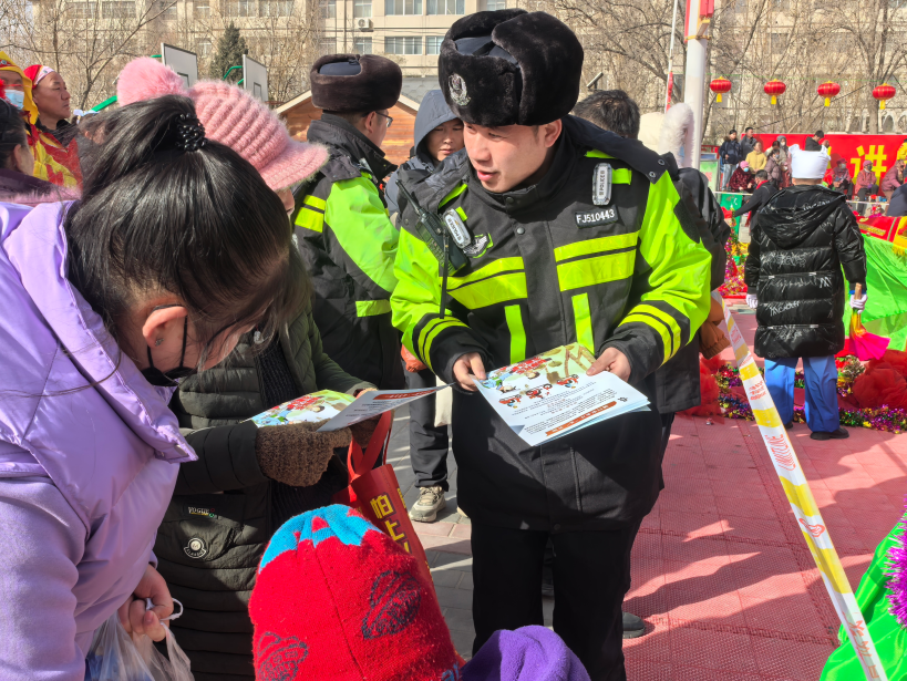 大队宣传民辅警穿梭在人群中,向演员和群众发放印有“一盔一带”“拒绝酒驾”等主题的宣传手册,同时结合农村地区常见的交通违法行为,用通俗易懂的方言开展安全宣讲。针对社火表演期间人员集中、车队出行频繁的特点,重点讲解超员超载、农用车违法载人、无证驾驶、骑乘摩托车不戴安全头盔等行为的严重危害,特别提醒表演队伍严禁占用机动车道排练、演出和巡游,不得使用货运车辆运送参演人员,确保活动安全有序进行。