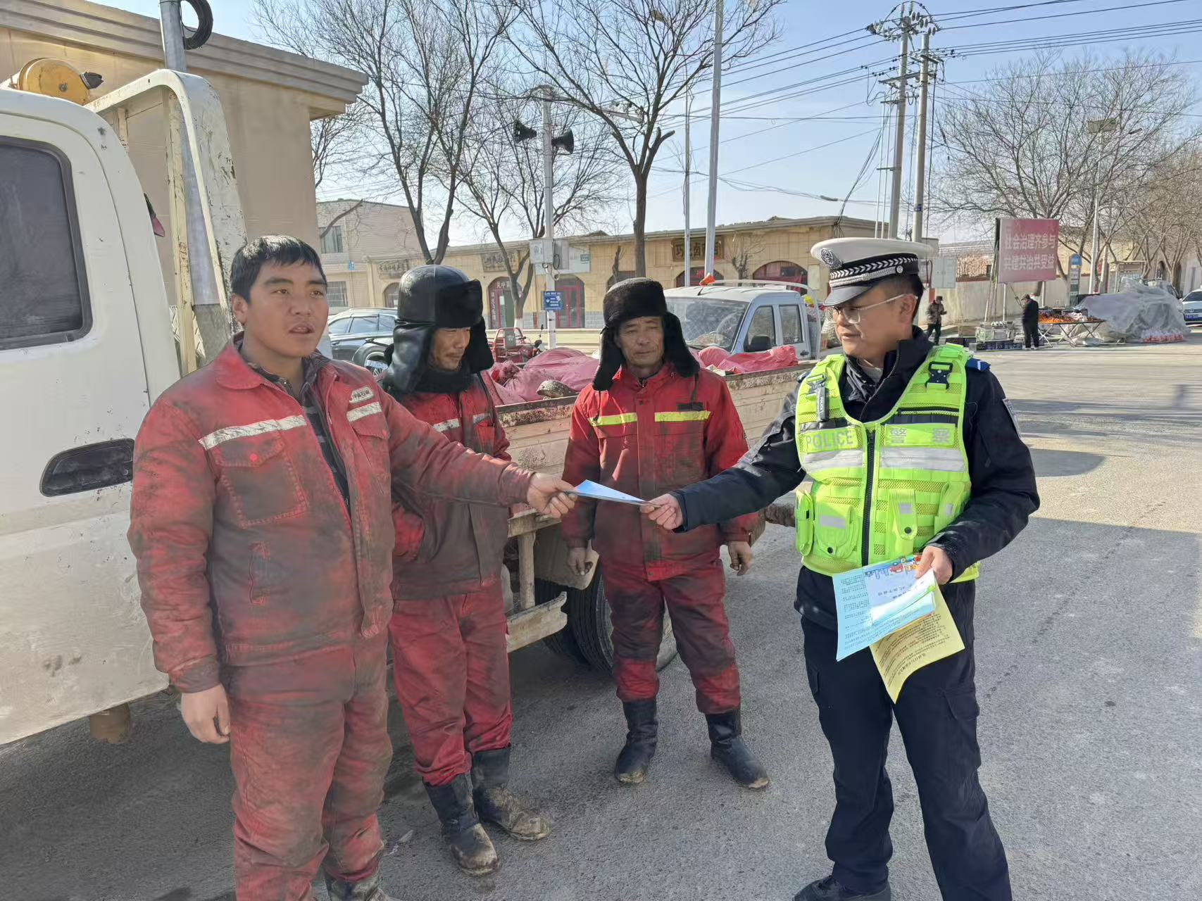 民警在辖区重点路段、路口设置检查点,对过往的货运车辆、农用车、面包车等重点车辆进行逐一排查,重点查处超员超载、疲劳驾驶、农用车违法载人、无牌无证等交通违法行为。同时,民警结合辖区务工人员集中返岗的实际情况,深入务工人员集中的区域,发放交通安全宣传资料,讲解返程途中的安全注意事项,提醒大家拒绝乘坐超员车、带病车,自觉抵制各类交通陋习,确保返程安全。
