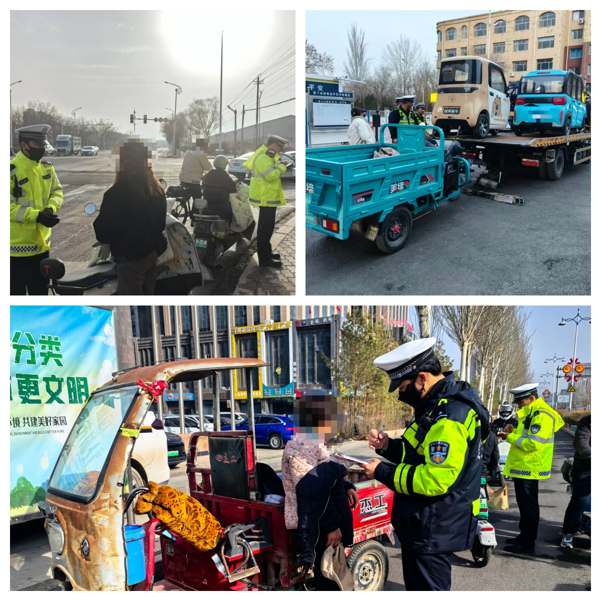 行动中,大队精准研判辖区摩电车辆出行特点,科学调配执勤警力,采取定点查缉与流动巡逻相结合、白天管控与夜间攻坚同步推进的勤务模式,以城区主干道、商圈市场、学校周边、城乡接合部、农村集市等人流车流密集路段为重点整治区域,紧盯无牌无证、不佩戴安全头盔、超员载人、闯红灯、逆行、不按规定车道行驶、非法改装、飙车炸街、酒后驾驶等突出违法行为。执勤民辅警坚持严格规范公正文明执法,对交通违法行为“发现一起、查处一起、教育一起”,刚性执法与柔性劝导并重,切实做到严查严处、不留死角,全面净化辖区道路通行秩序。
