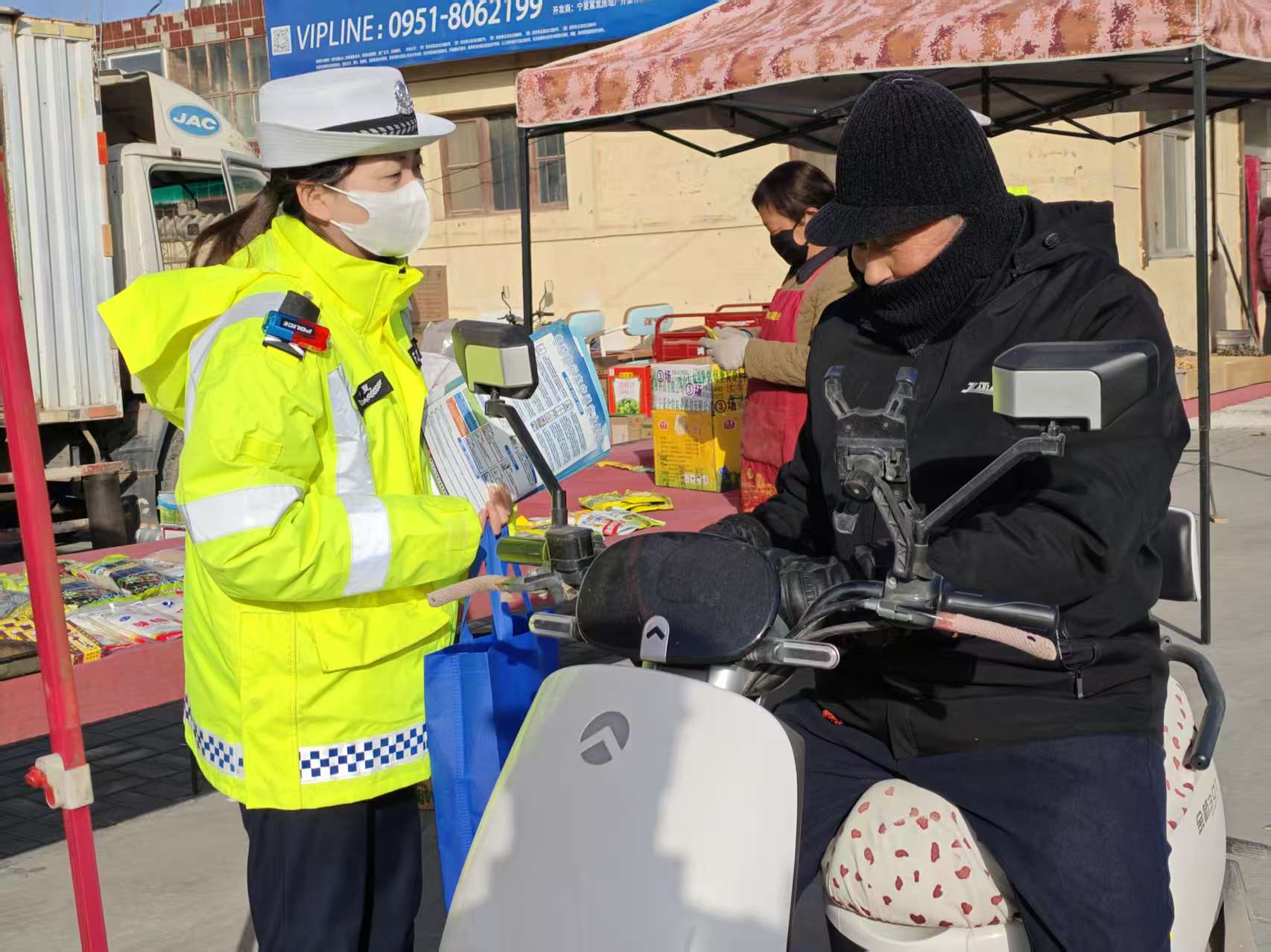 大队坚持整治与宣传并行、执法与教育并重,以交通安全“七进”宣传为有力抓手,组织民辅警深入社区、企业、校园、农贸市场、乡村等地,通过发放宣传资料、现场讲解交通法规、播放事故警示视频、以案说法等形式,向群众详细讲解摩电车辆上牌登记、持证驾驶、佩戴安全头盔的重要性,深入剖析各类交通违法行为带来的安全隐患。同时,充分利用微信公众号、短视频平台等宣传载体,高频推送整治动态、安全提示及典型事故案例,持续扩大宣传覆盖面与影响力,引导广大摩电骑乘人员自觉遵守交通法规,摒弃交通陋习,主动养成文明骑行、安全出行的良好习惯。(贺兰县公安局交通管理大队 何冰钦