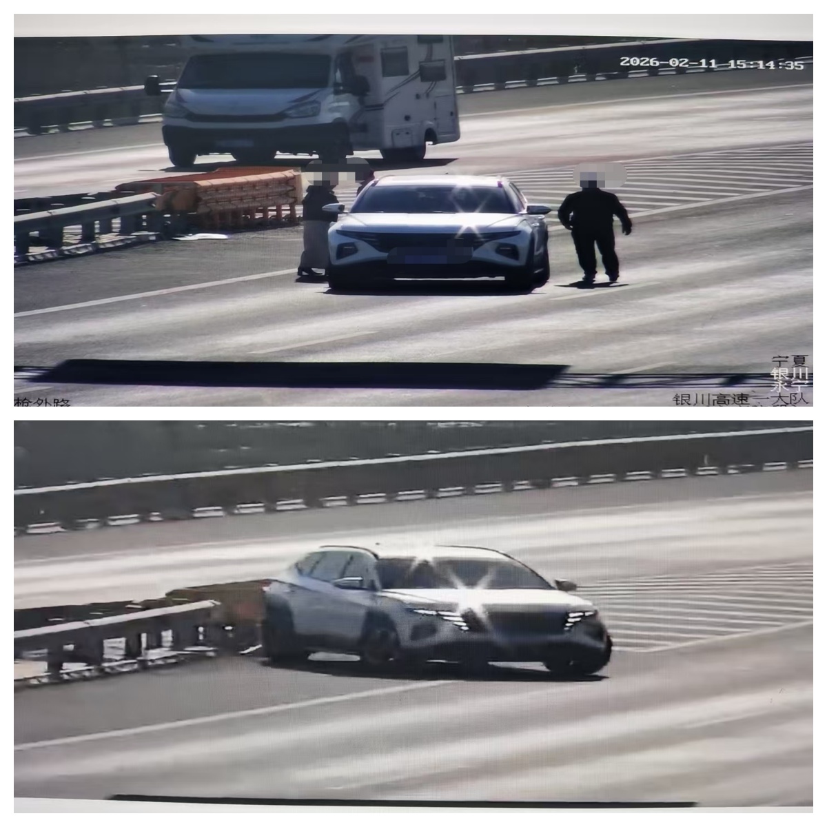 2026年2月11日15时10分许,银川市公安局交通管理局高速一大队分控中心工作人员在开展日常视频巡查工作时,发现在京藏高速K1202公里处有一辆白色suv缓缓行驶至福银高速和京藏高速交汇处的导流线旁停下来。随后,工作人员发现该车驾驶员竟直接在高速公路倒车,分控中心值守人员立即对违法行为进行抓拍取证。此时车辆歪歪扭扭向后倒车的过程当中,又撞上了高速公路的中央护栏,驾驶员随后将车辆斜着停在行车道内。车内人员不顾高速公路上的车来车往,下车查看车辆受损情况。值班员立即通过车号查询车主电话并联系驾驶员。电话还未接通,一名随车男性乘客坐上驾驶位,又连续倒车数米,向右变道驶向福银高速。