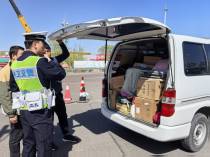 4月5日,中卫市公安局交通管理局高速公路三大队执勤民警在中宁高速入口处,查处一起载客汽车违反规定载货的交通违法行为。