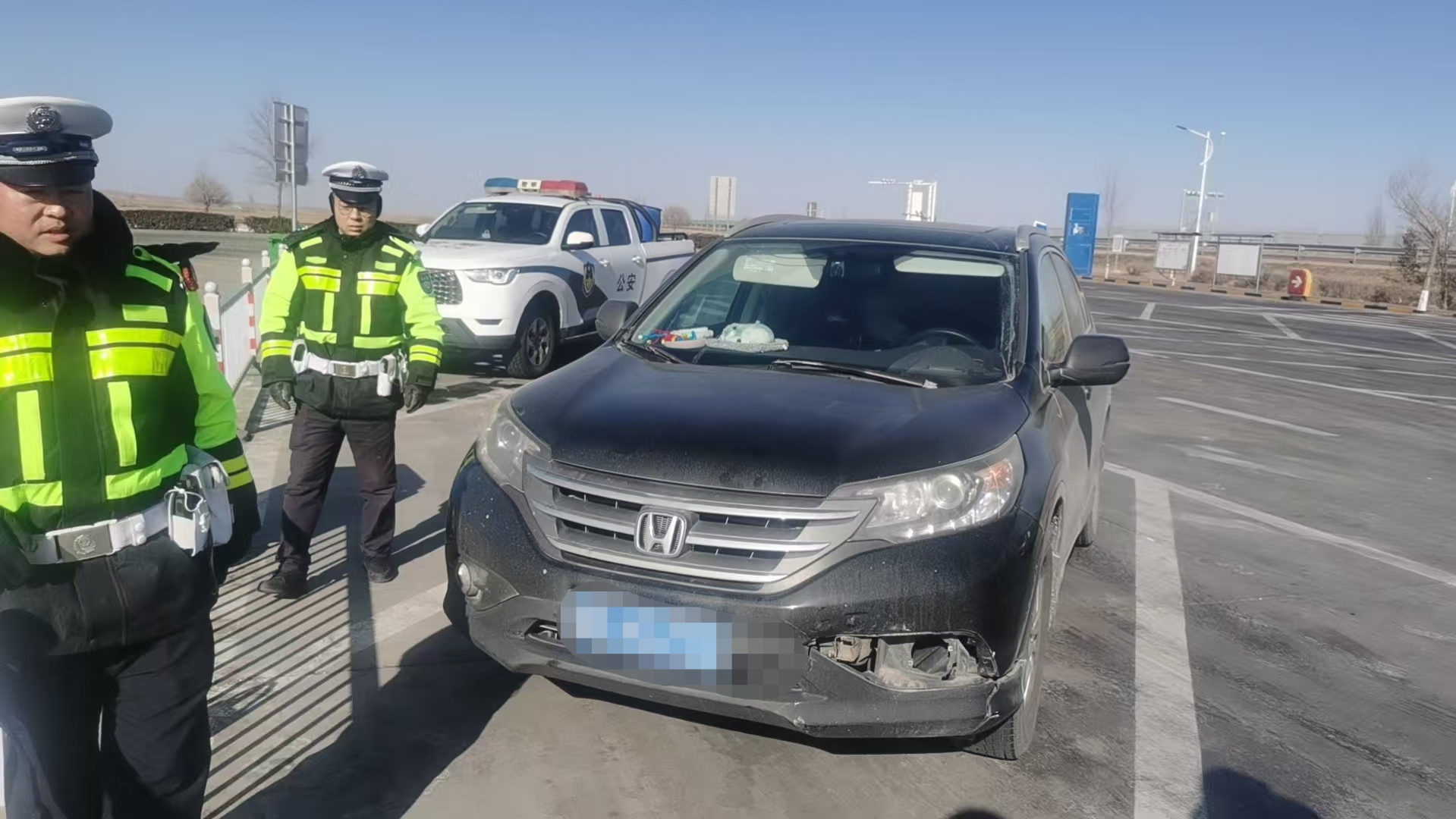 1月10日13时许,中卫市公安局交通管理局高速公路三大队接到一名驾驶员报警,称其在高速公路行驶过程中,自己的车辆撞到了一个障碍物,需要处理。