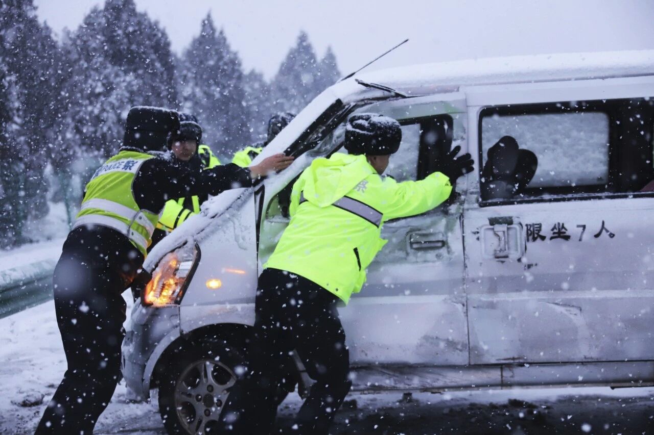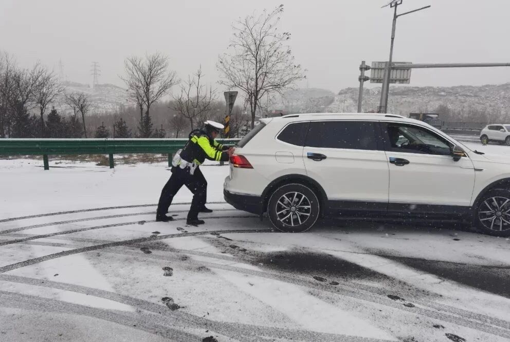 “师傅,慢点走,跟着警车走,注意保持车距!”在青兰高速隆德段,固原交管支队民警李万军的声音已经沙哑。从13日清晨到14日凌晨,他和同事连续奋战十余个小时,脸被寒风吹得通红,手套上结了薄冰,却始终坚守在路面。遇到打滑的车辆,他们二话不说上前推车;看到驾驶员因风雪滞留,他们递上热水和方便面。13日夜间,一辆满载物资的货车在福银高速六盘山段打滑被困,交警迅速赶到,撒防滑沙、合力推车,忙活了半个多小时,终于让货车重新上路。驾驶员紧紧握住民警的手连声道谢:“多亏了你们,不然我真不知道该怎么办。”
