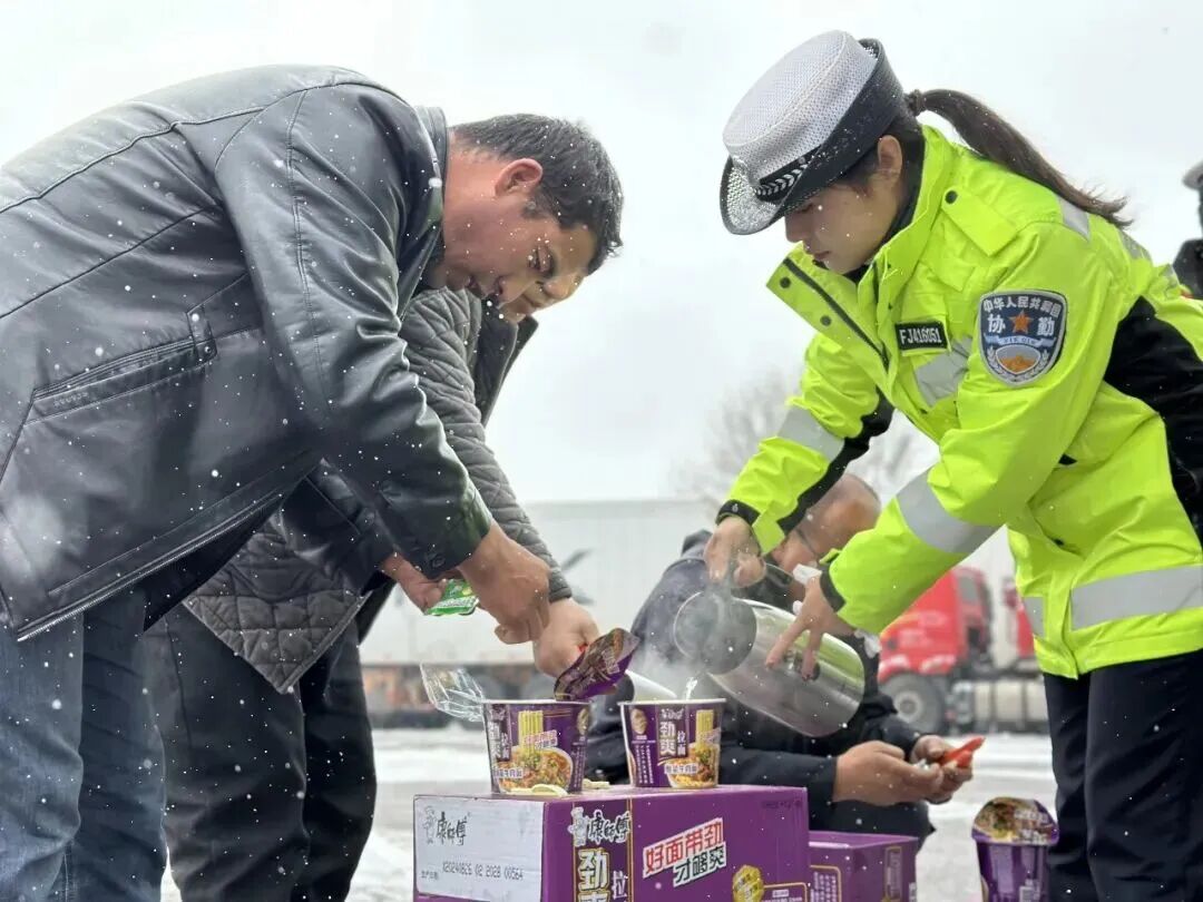 在严格管控的同时,宁夏交警始终将服务温度融入保畅工作的每一个细节。近十五个月里,全区公安交管部门累计出动警力超5000人次、警车1300余台次,全警上路、昼夜坚守,在收费站口、排队缓行路段为群众送上热水、食物、御寒物资,累计救助车辆1439辆次,服务群众2230余人次。2025年寒冬,固原高速路口,交警为滞留货车司机送上方便面和热水,一句“看到你们的荧光黄,心里就踏实了”,成为群众对交警工作最真挚的认可。2026年3月春雪期间,为保障全区公务员考试顺利进行,交警专门规划考点周边通行路线,全程护航考生出行,服务考生及家长750余人次。