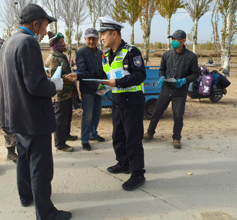近日,中卫市公安局交通管理支队沙坡头区三大队组织警力深入田间地头,开展“护秋收”交通安全宣传活动。