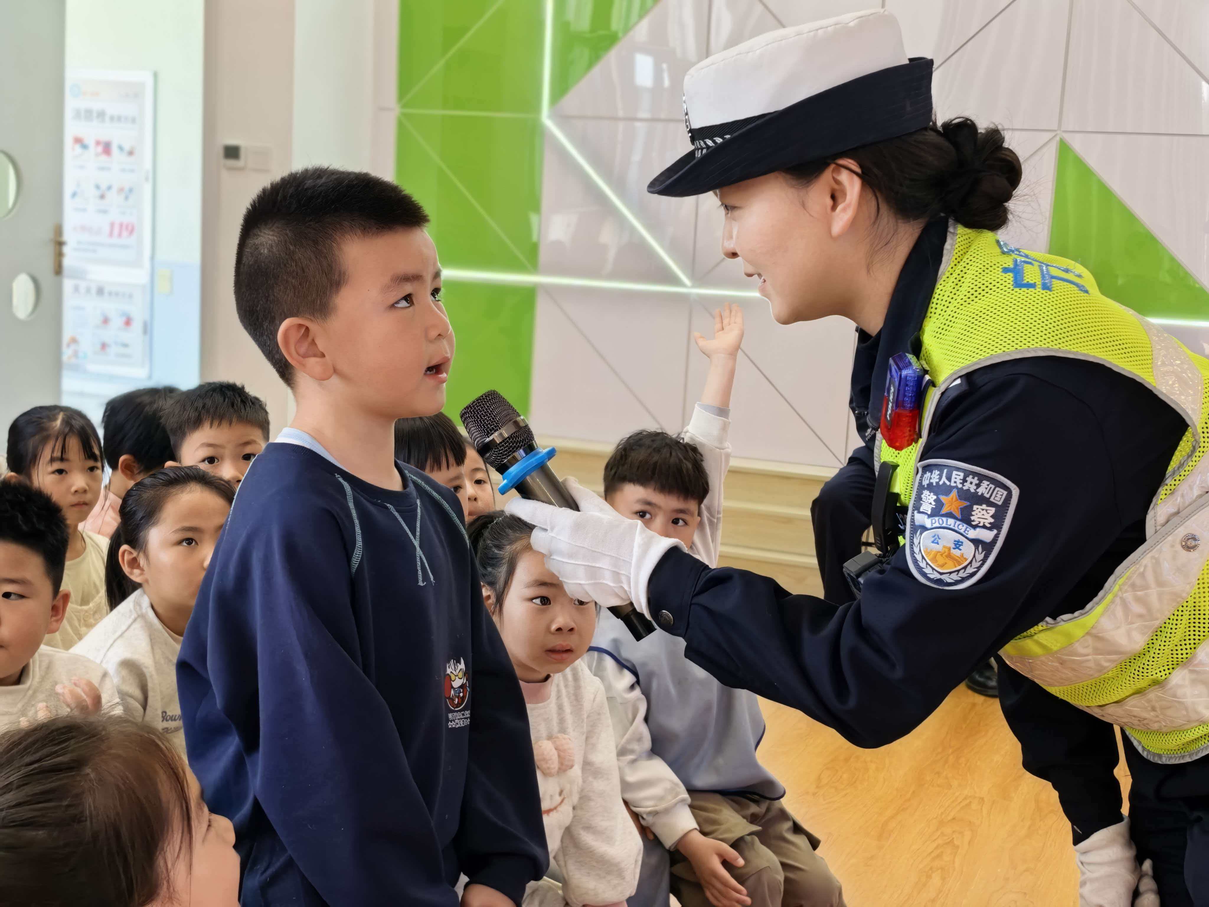 为增强互动性与趣味性,现场设置交通安全骰子互动游戏环节,小朋友们踊跃参与、积极抢答,在轻松欢乐的氛围中加深对交通安全知识的理解与记忆。活动尾声,民警为表现积极的孩子送上可爱的交警小熊,以暖心礼物传递安全理念,让文明出行的种子根植童心。