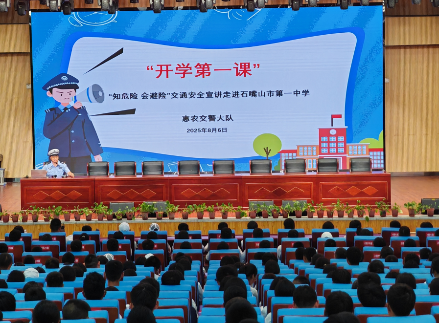 8月6日14时50分,惠农交警大队走进石嘴山市第一中学,对940名新生开展“开学第一课”交通安全主题宣传活动。