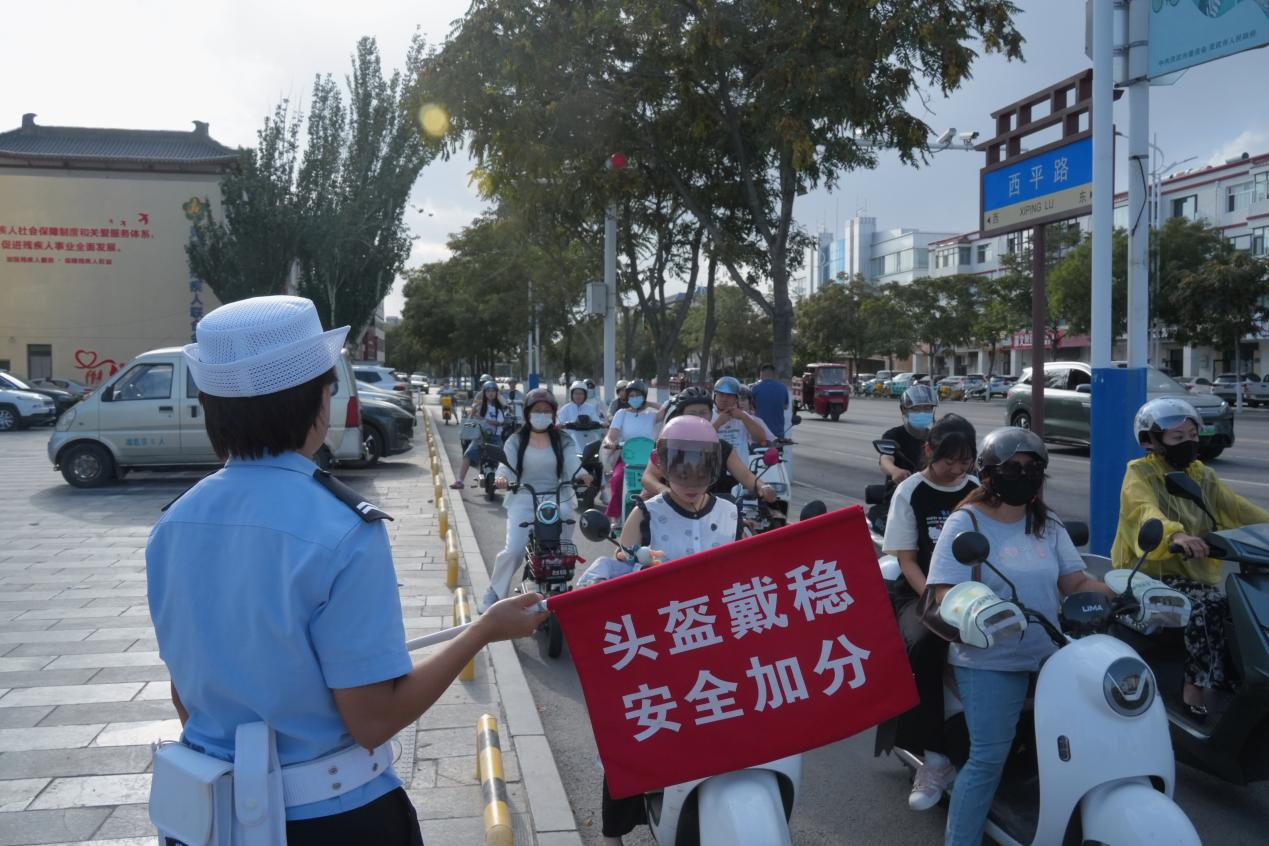 【西平路与嘉源街口的“平安蝶变”】每天清晨七点半,灵武市西平路与嘉源街交叉路口已是车水马龙。交警李梦阳和同事们早已守候在此,他们目光敏锐地扫过每一辆经过的电动自行车。“师傅,请您靠边停一下,为了您的安全,骑行时必须佩戴好头盔。”李梦阳拦下一位未戴头盔的电动车驾驶员,一边开具警示罚单,一边耐心解释安全头盔的关键作用。不远处,交警李杰正对主动在斑马线前停车礼让行人的私家车驾驶员竖起大拇指,送上“文明礼让点赞卡”。