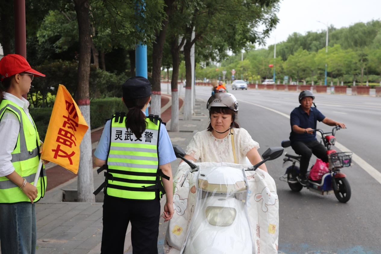 持续推进交通文明建设,保障市民的出行安全,灵武市优化交警警力,采取“早晚高峰”连轴转,“处罚劝导”两手抓措施,对城区8个主要路口开展秩序整治,纠治交通违法行为,切实提高交通参与者的安全意识。随着专项整治行动的推进,“一盔一带 安全常在”的理念和“车让人、人快走”的文明礼让风尚蔚然成风。