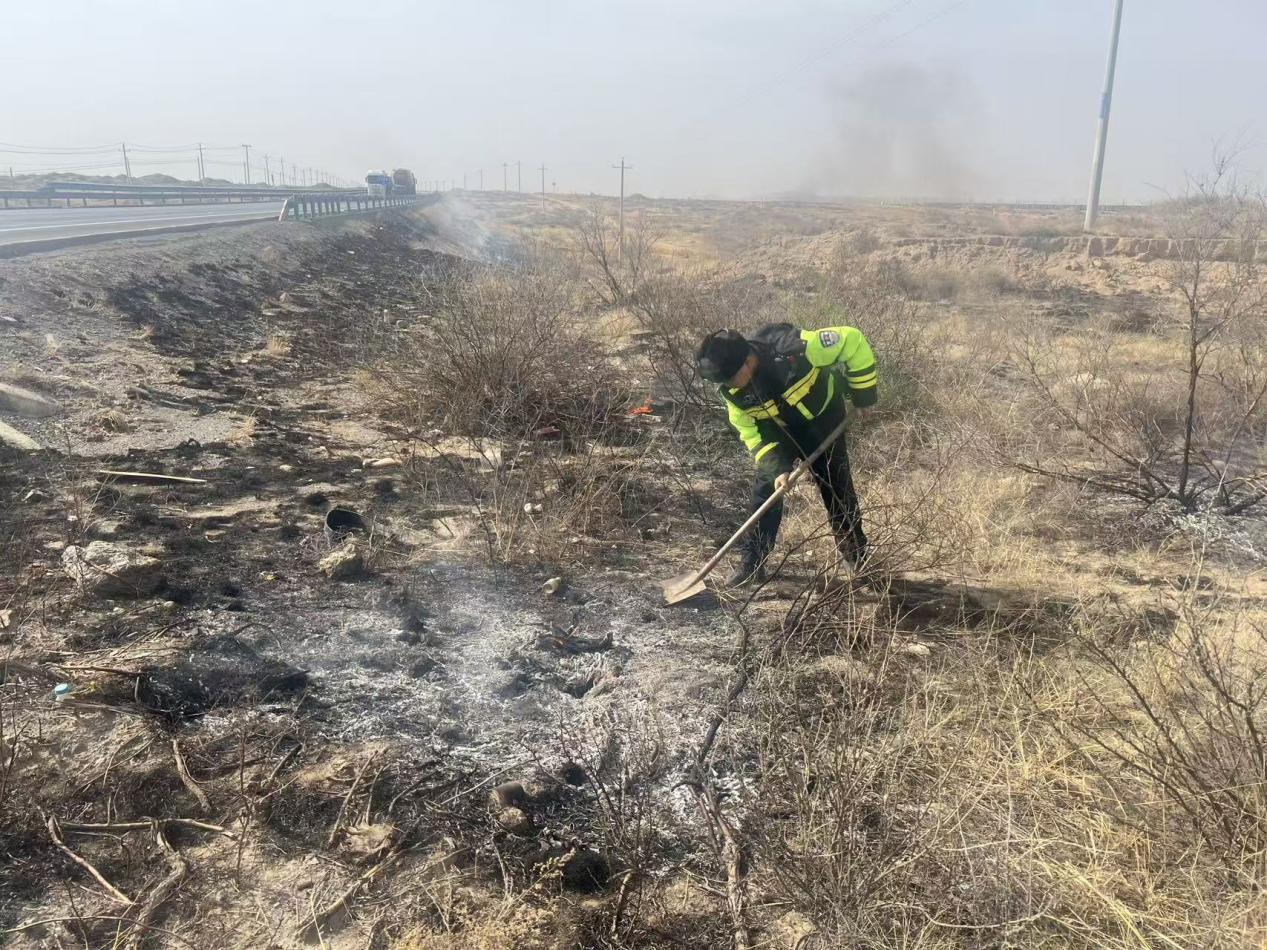 3月1日,中卫市公安局交通管理支队沙坡头区四大队接到群众报警称,338国道甘塘小红山路段路边草原发生火情,存在安全隐患。大队高度重视,立即安排警力赶赴现场。