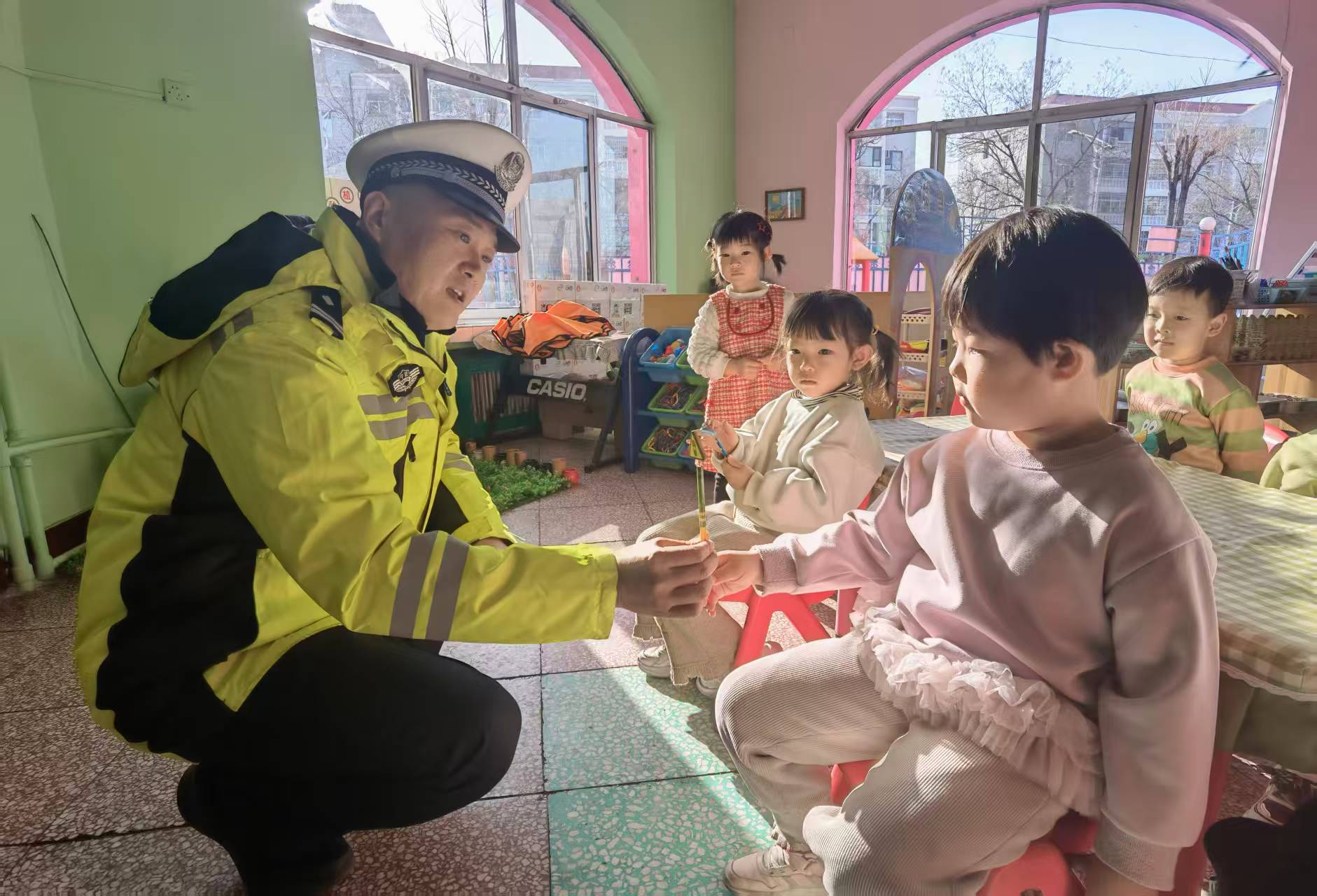 为进一步增强幼儿交通安全意识,筑牢校园安全防线。3月9日,大武口交警大队宣传民警走进辖区春雨、宝迪乐、嘉禾等幼儿园,开展“开学第一课”交通安全主题宣传活动。