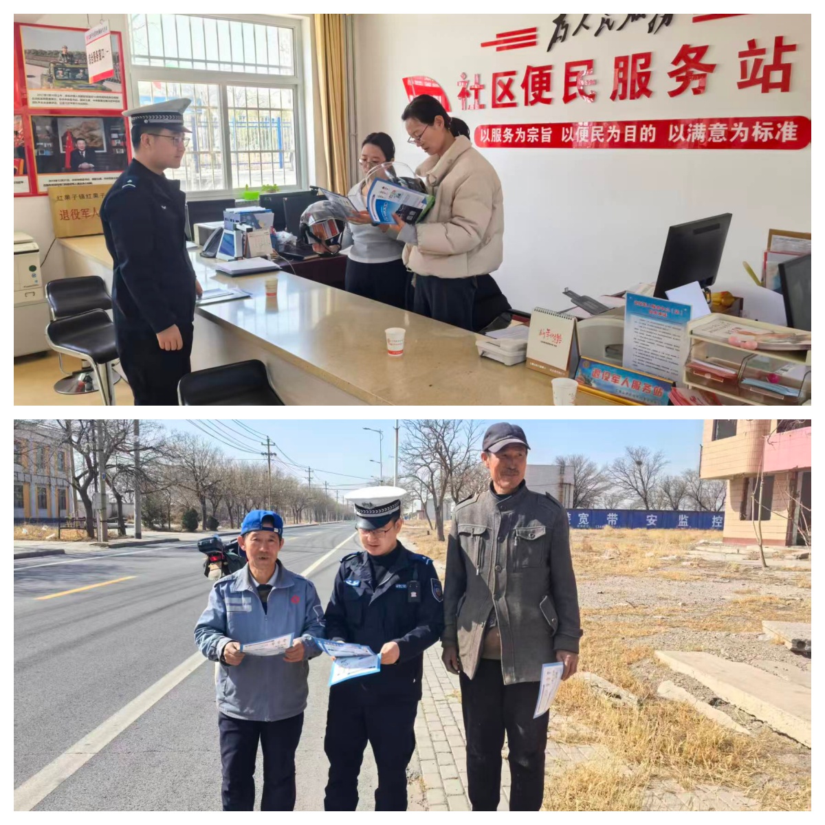 为进一步筑牢辖区道路交通安全防线,提升社区居民的文明出行意识,3月24日,石嘴山市交通管理局红果子交警大队走进辖区红果子社区开展交通安全宣传活动。