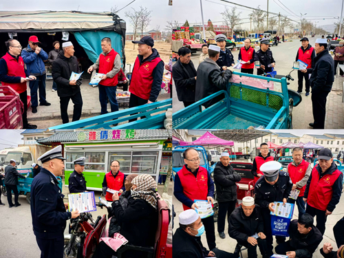 集市上,民警与驻村工作队的同志一同穿梭在摊位与人群中,通过发放宣传资料、讲解典型事故案例等方式,重点普及“一盔一带”安全防护知识,详细讲解三轮车违法载人、超员超载、酒驾醉驾、逆向行驶等交通违法的严重危害性。提醒大家摒弃交通陋习,自觉践行安全文明出行理念。(青铜峡市公安局交管大队 刘立锋)