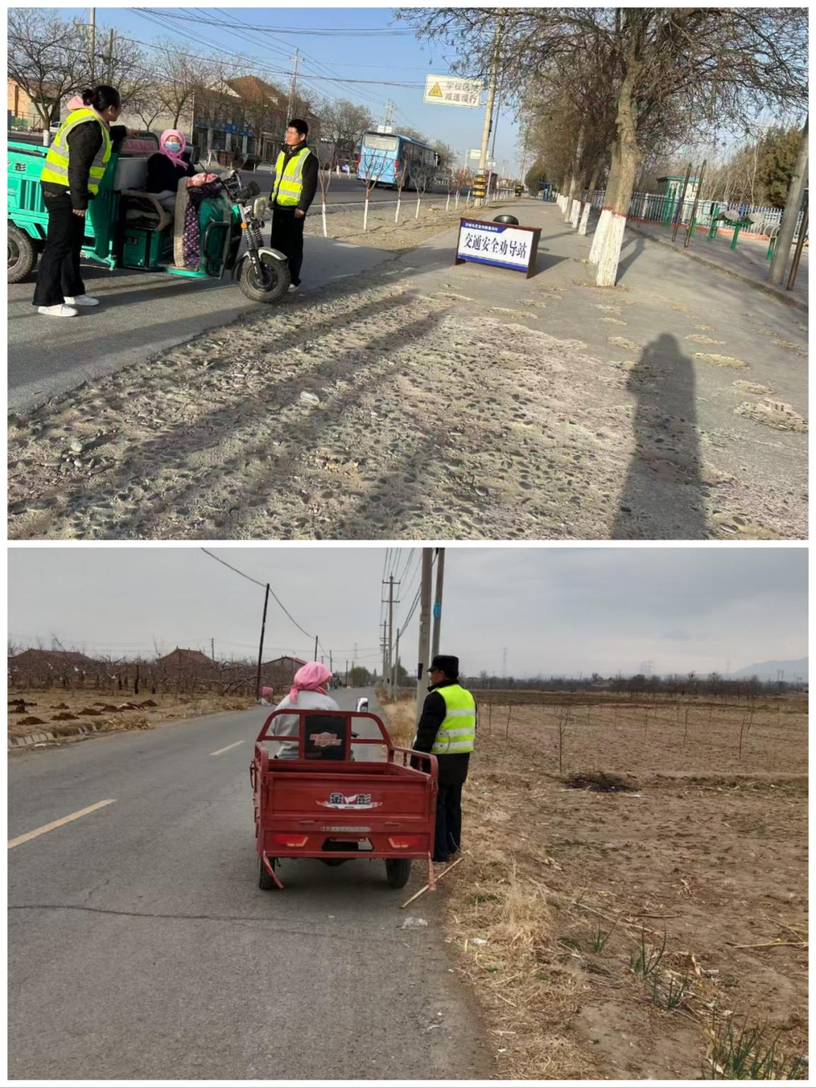 发挥劝导作用,守好出村关口。充分发动各乡镇农村交通安全劝导员力量,在进出村口、重要路口等关键位置设立劝导点。劝导员们统一着装,对过往的摩托车、面包车、农用车等重点车辆进行耐心劝导,“戴好头盔再走。”“三轮车不能拉人,危险得很。”等暖心提醒,让交通违法不出村、不上路。