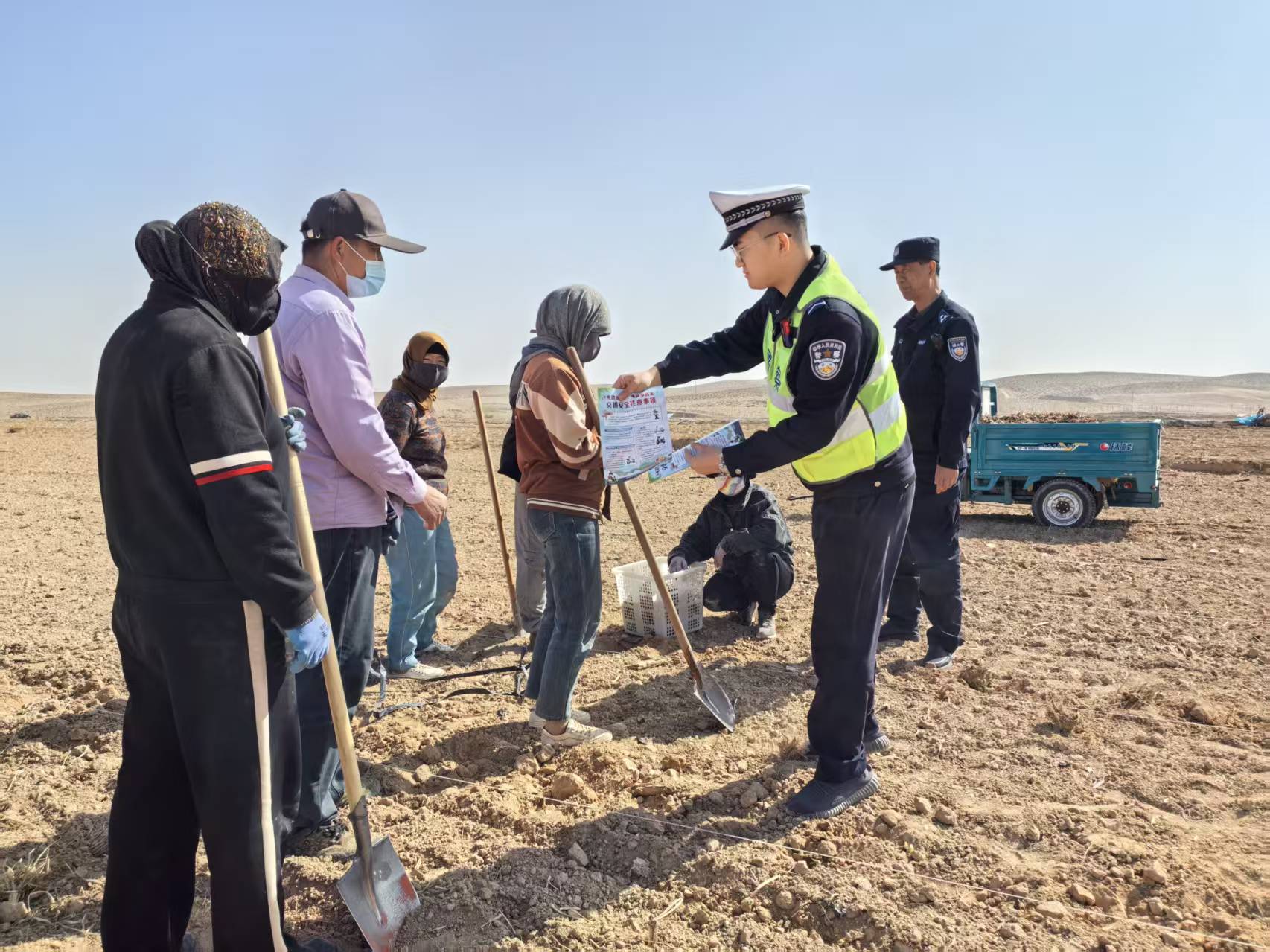 为切实防范化解农村道路交通安全风险,守护群众春耕生产与清明出行安全,红寺堡交管大队联合大河派出所社区民警,主动下沉一线,深入辖区大河乡各村组,开展全方位、接地气的交通安全宣传活动,将安全知识送到群众家门口、田地间。