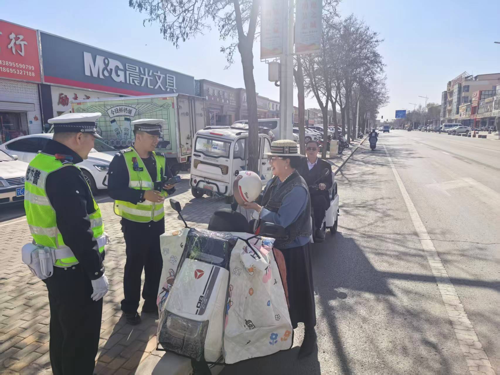 深化摩电综合治理,规范骑行守安全。大队持续推进电动摩托车、电动自行车专项治理工作,紧盯无牌无证、未佩戴安全头盔、逆行、闯红灯、违规载人载物等突出违法行为,在重点路口路段开展严查严管。现场督促未上牌车辆及时办理登记入户手续,向驾乘人员普及“一盔一带”安全常识,坚持处罚与教育相结合,引导群众自觉遵守交通法规,从源头压降摩电车辆交通事故风险。