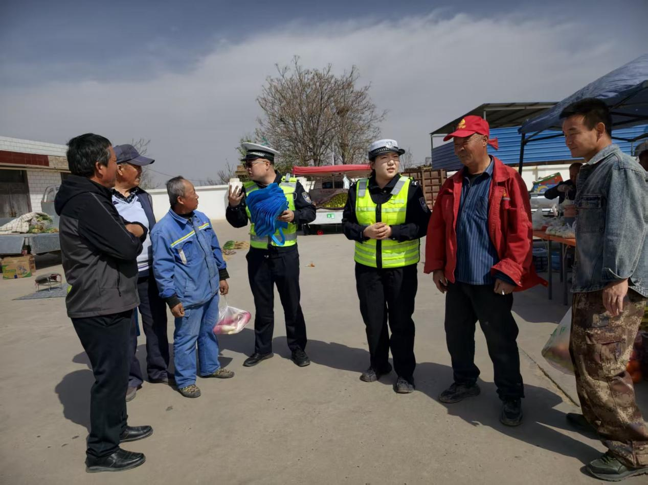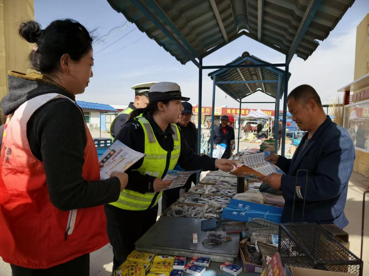 4月8日上午,中宁县公安局交管大队组织民辅警联合鸣沙镇“两站两员”工作人员,走进辖区鸣沙集市,开展以“春耕出行 勿忘交通安全”为主题的宣传活动,将交通安全知识送到群众身边。