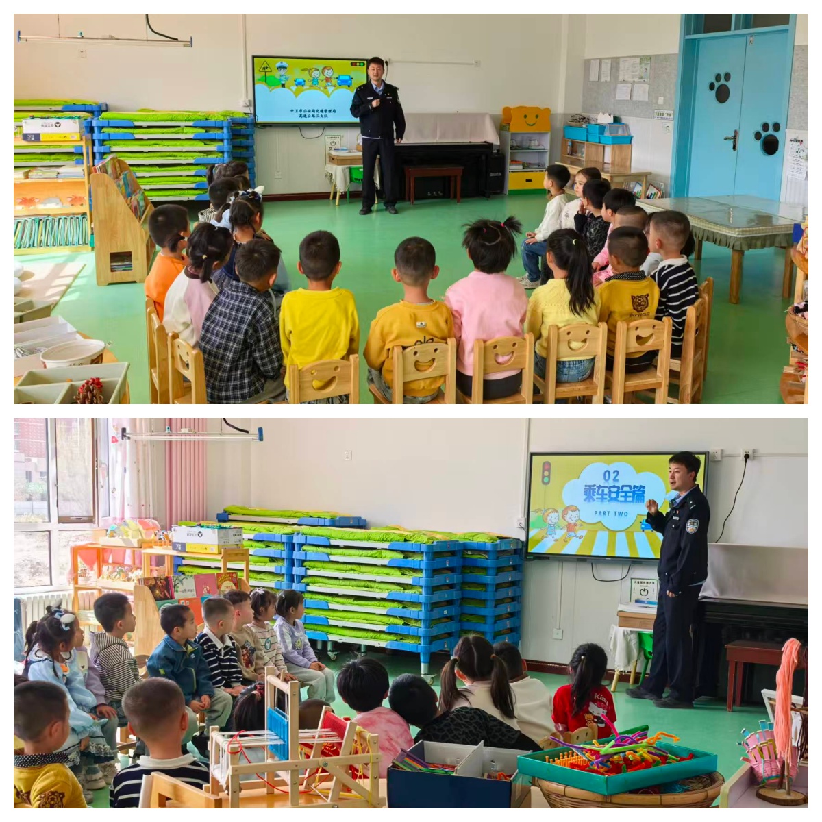 民警结合幼儿认知特点,采取卡通课件授课结合趣味问答等形式,同时开展互动,讲解红绿灯、斑马线、交通标志等基础常识,为孩子们讲解乘车系好安全带、不随意横穿马路、不在车边玩耍、不在马路上追逐打闹、安全过红绿灯等安全知识。寓教于乐的活动让孩子们在玩乐中牢记规则,在欢声笑语中播下安全种子。(中卫市公安局交通管理局高速公路三大队 余海洋)