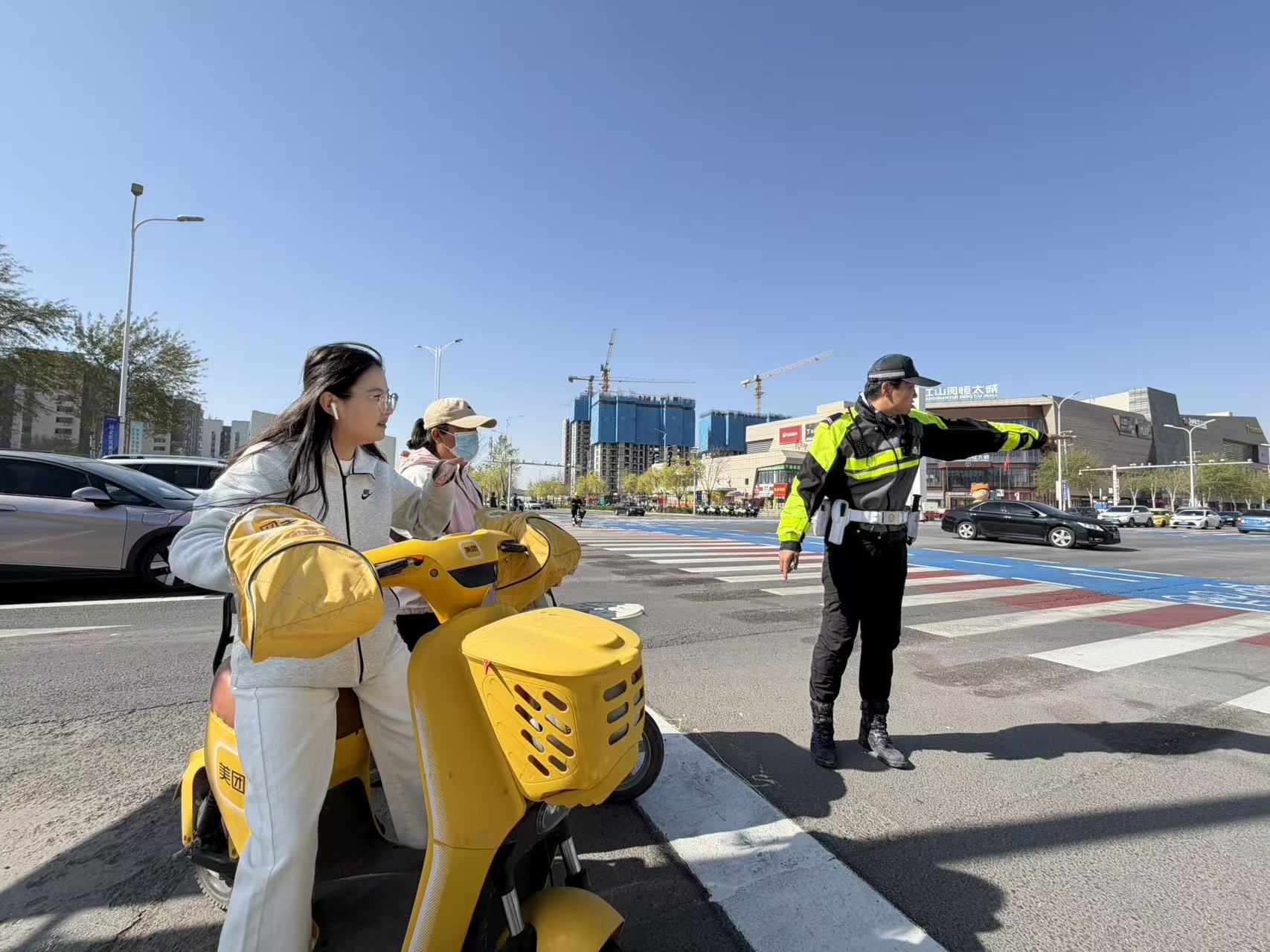 为深化辖区道路交通精细化治理,全力保障银子湖街与双庆路路口“蓝道过街”新模式落地见效,切实规范非机动车通行秩序,永宁县公安局交管大队骑警队“极光行动队”聚焦该重点路口,以“指挥引导+违法查处”双管齐下模式,开展交通秩序整治与引导服务,全力护航群众安全文明出行。