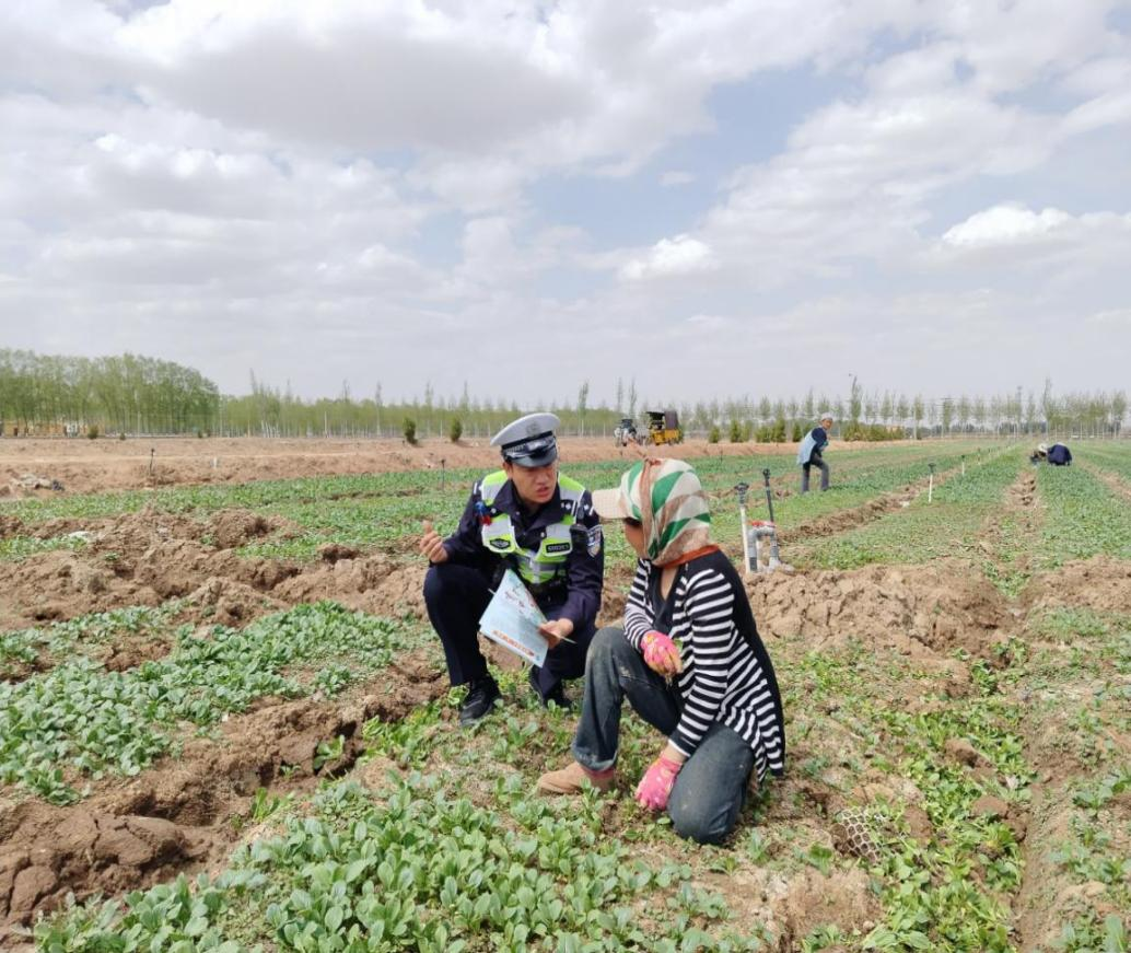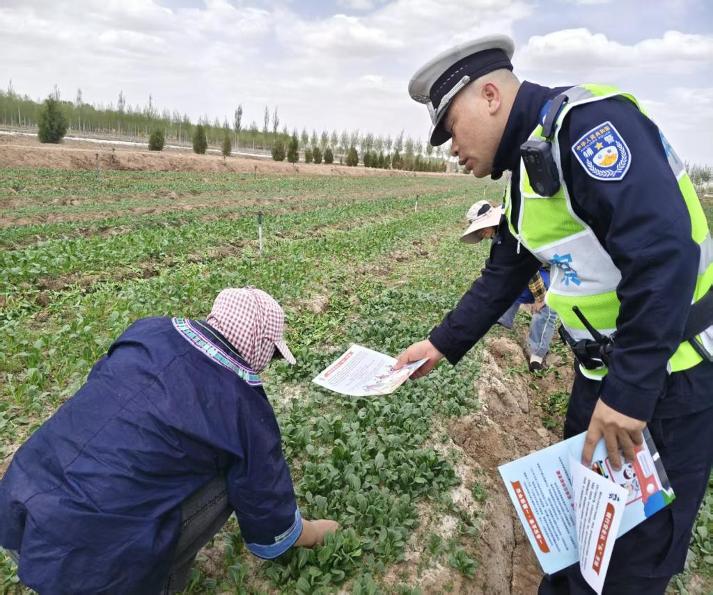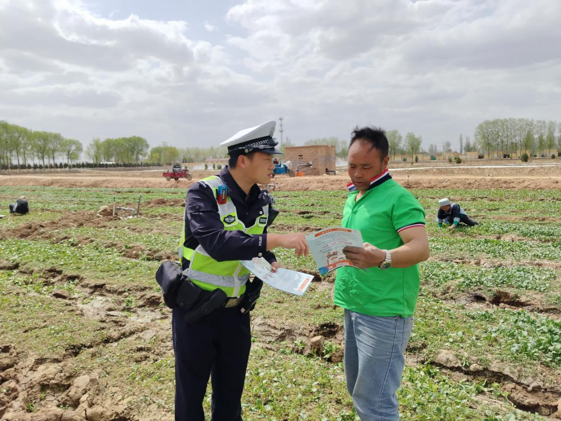 当前正值春耕农忙关键时期,辖区港菜种植基地农事作业繁忙,农用车辆出行频次大幅增加,道路交通安全风险隐患凸显。4月13日,中卫市公安局交通管理支队沙坡头区三大队组织宣传民辅警深入辖区港菜种植基地,精准开展春耕农忙专项交通安全宣传活动,把安全知识送到田间地头、送到菜农身边。